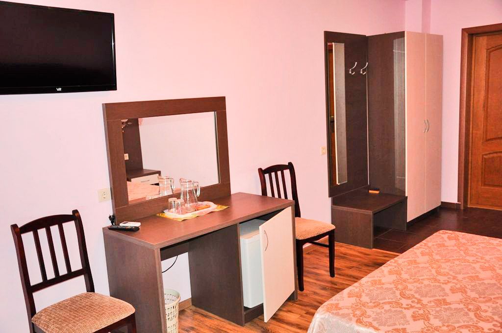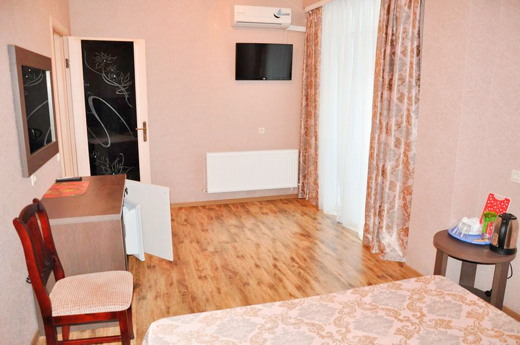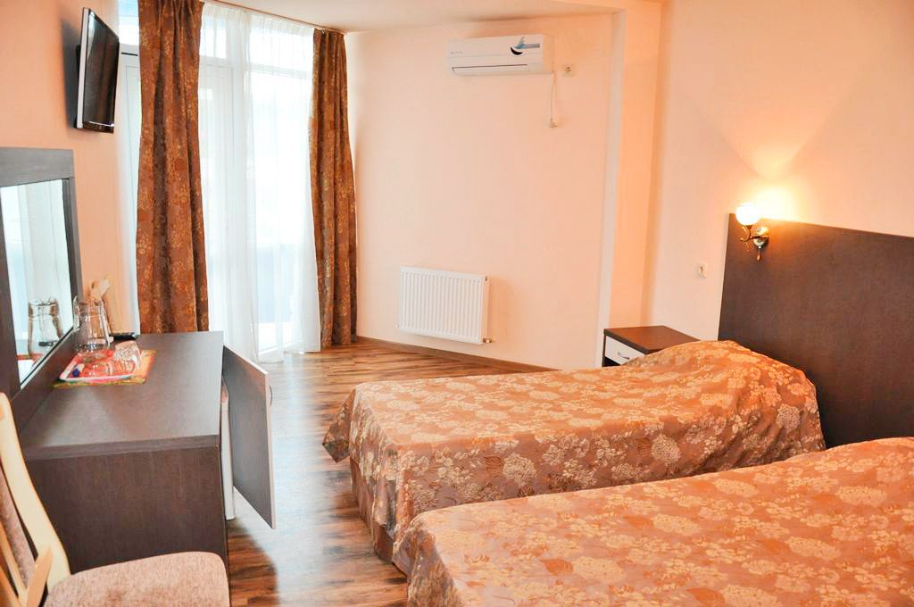 В номере: санузел (душевая кабина, раковина, фен, шампунь, мыло, туалетная бумага), кровать двуспальная 160х200 или раздельные односпальные 90х200, прикроватные тумбочки, светильники, сейф, телевизор ж/к, холодильник, сплит-система, качественное постельное белье, цифровое ТВ.
