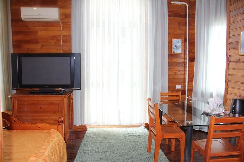 Однокомнатный номер, имеется кровать-диван, две односпальные кровати, плазменный телевизор, шкаф, холодильник, кондиционер, Wi-Fi.