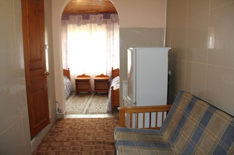 Вместительная студия! Номер отделан деревом, мебель из ангарской сосны: стулья, стол, шкаф, тумбочки. В номере: двуспальная кровать, 2 односпальные кровати, плазменный телевизор с выходом в интернет, холодильник, кондиционер, Wi-Fi. Ванная комната: раковина, туалет, душ. Вид на город и море.