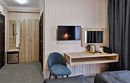 В номере просторная ванная комната. Мягкая мебель, телевизор и холодильник.
