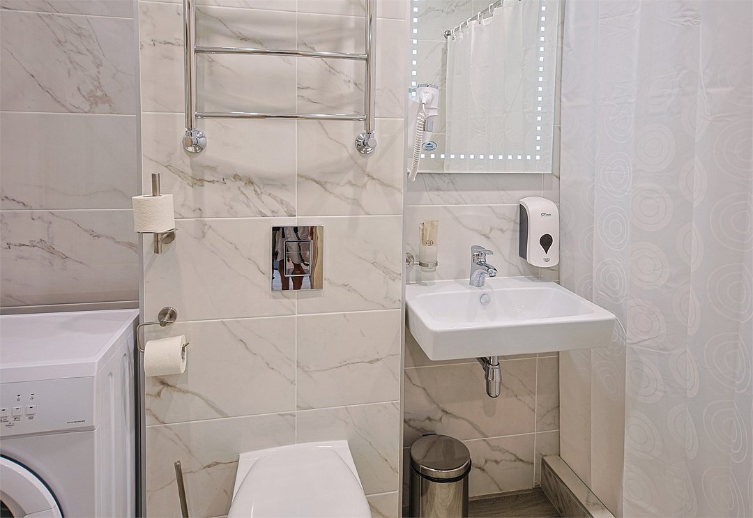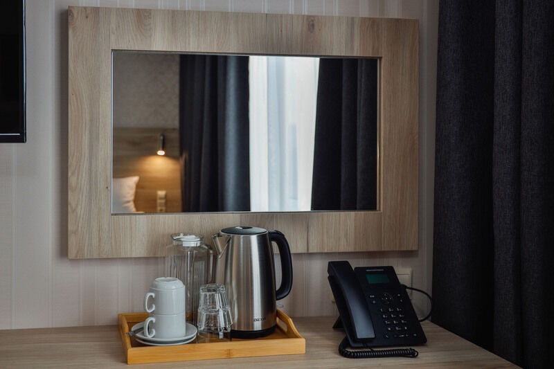 Wi-Fi, холодильник, кондиционер, светильник, фен, электронные замки, плита для приготовления пищи, микроволновая печь, утюг, ванная комната, санузел, банные полотенца, тапочки, гигиенические средства, односпальная кровать, гладильная доска, стулья, шкаф для одежды, обеденный стол, багажная тумба, зеркало, сейф, стиральная машина, чайник, унитаз, душ, плиточное покрытие, стаканы, столовые приборы, стул, стол, туалетный столик, туалетные средства, туалет, сплит-система, телевизор с плоским экраном, кухонный уголок, двуспальный раскладной диван-кровать, вешалки-плечики, частный двор, мыло, затемняющая штораВ гостиничном номере