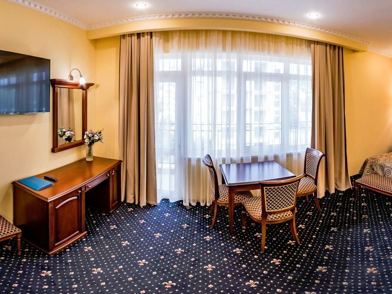 Оборудован современной комфортабельной мебелью. Рассчитан на 2 основных и 1 дополнительное место. В номере две раздельные или одна двуспальная кровати, ванная комната с душевой кабиной или ванной, телевизор, мини-бар, кондиционер, сейф.Услуги и удобства