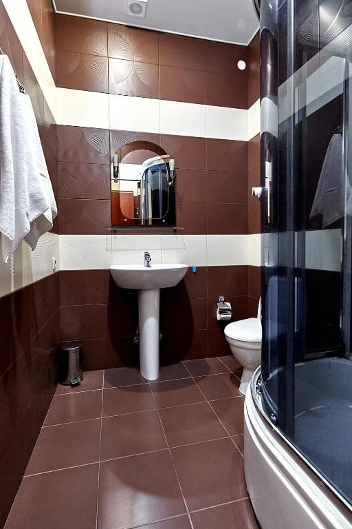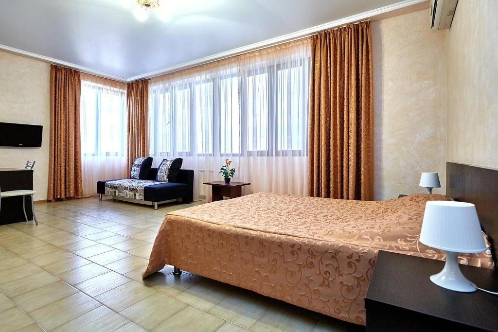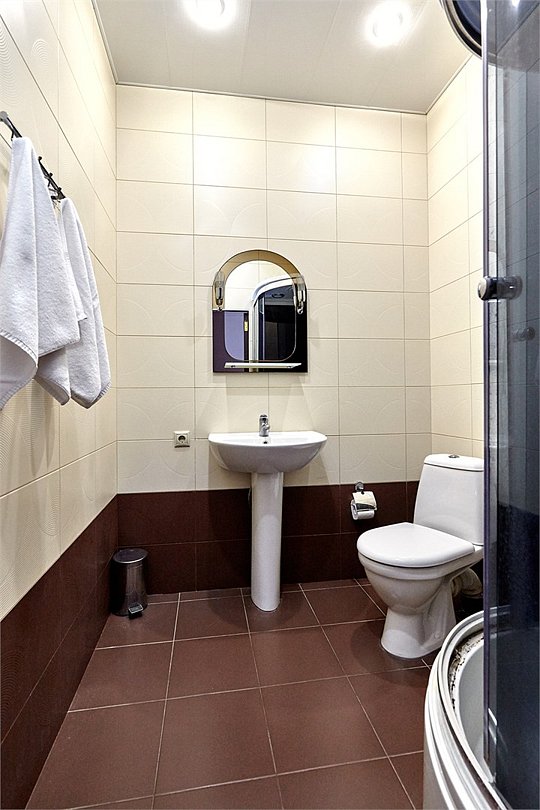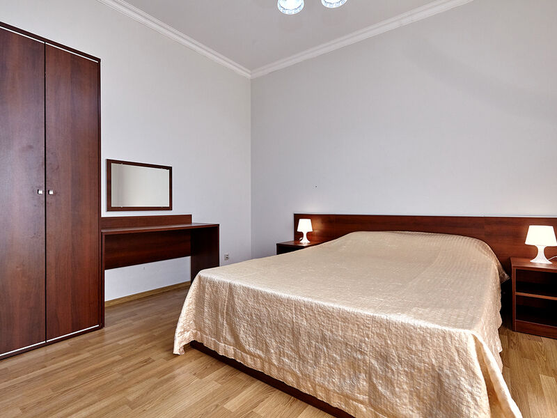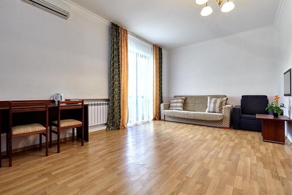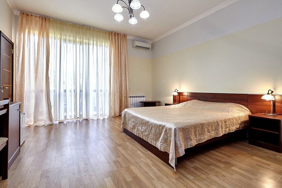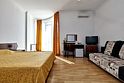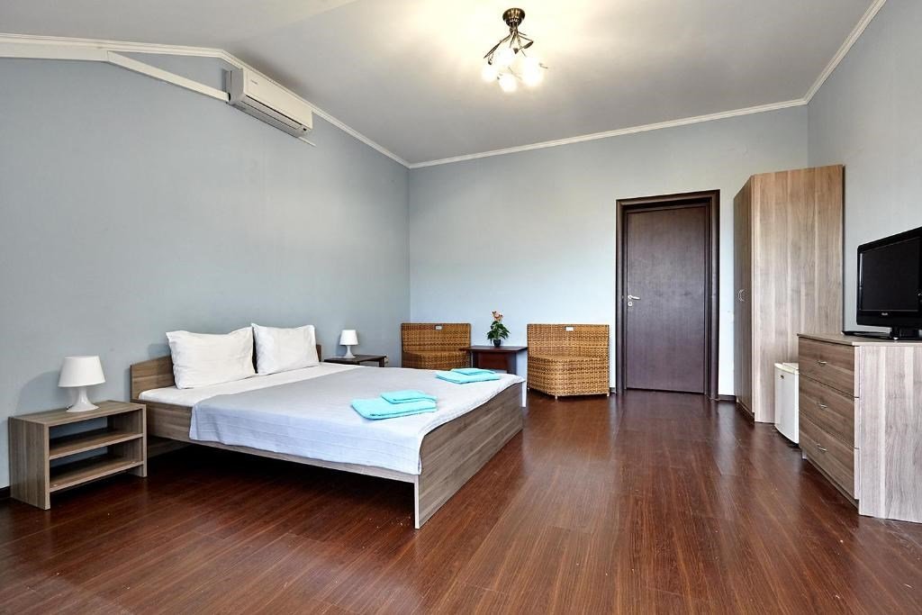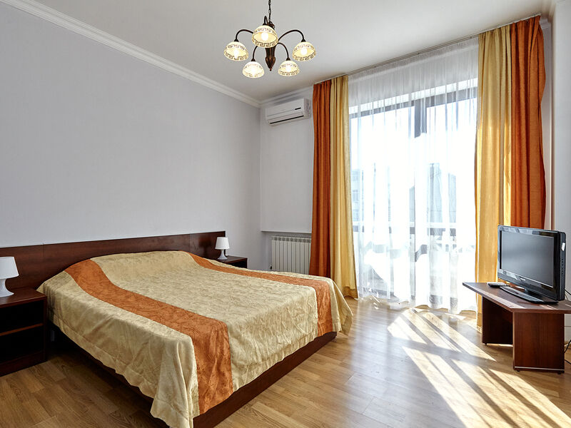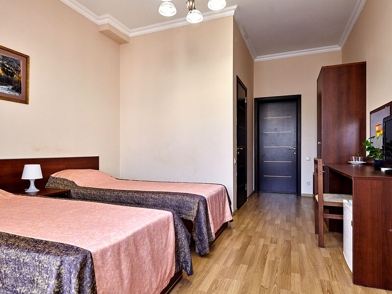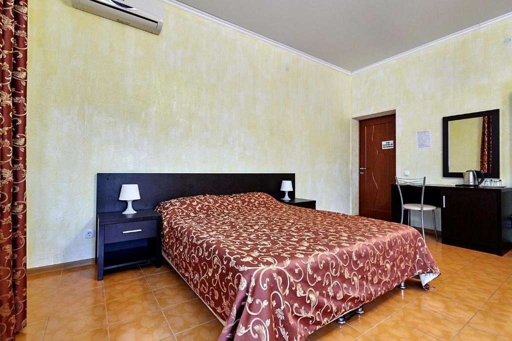 Номера с удобствами оборудованы всем необходимым для комфортного отдыха. Две односпальные или одна двухспальная кровать.В каждом номере сплит-система, телевизор с плоским экраном, холодильник, электрочайник, набор посуды, фен, собственная ванная комната с душем, зеркало, стол и стулья, 2 тумбочки, шкаф, набор полотенец, балкон.Услуги и удобства