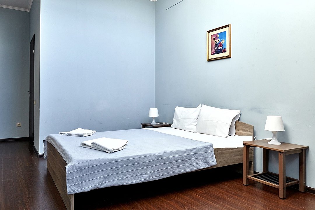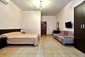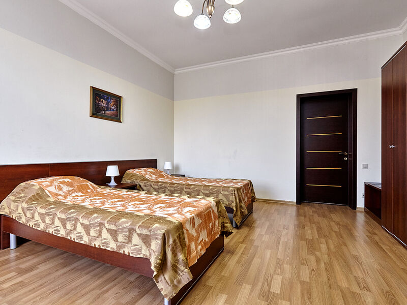 основные места - две двуспальные кровати и диван, С/у с душем, ТВ, К, мини-холодильник