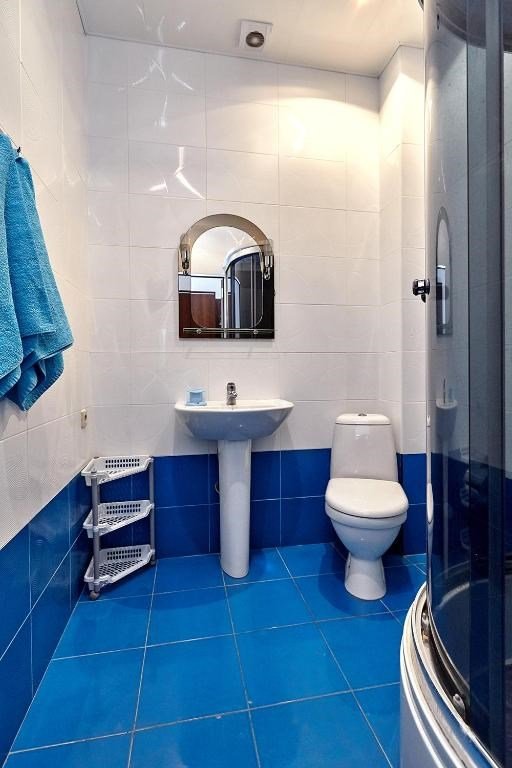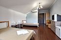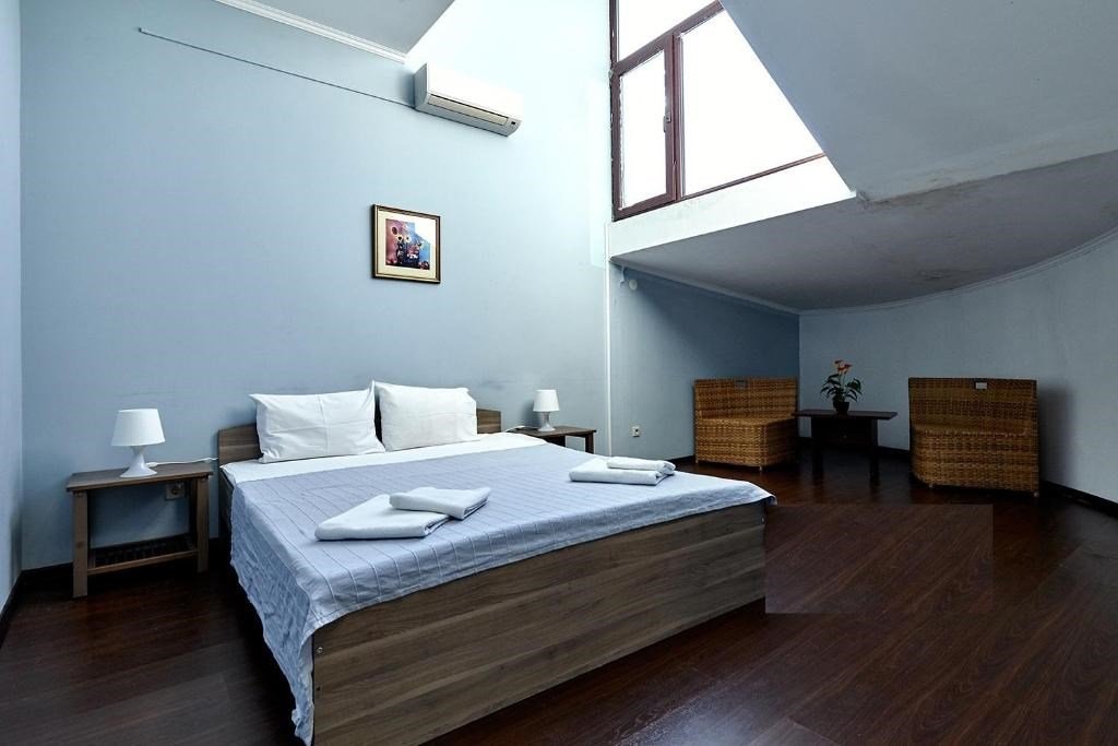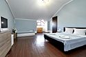 Номера с удобствами оборудованы всем необходимым для комфортного отдыха. Две двухспальные и две односпальные кровати. В каждом номере сплит-система, телевизор с плоским экраном, холодильник, электрочайник, набор посуды, фен, собственная ванная комната с душем, зеркало, стол и стулья, 2 тумбочки, шкаф, набор полотенец. Внимание: мансардный номерУслуги и удобства
