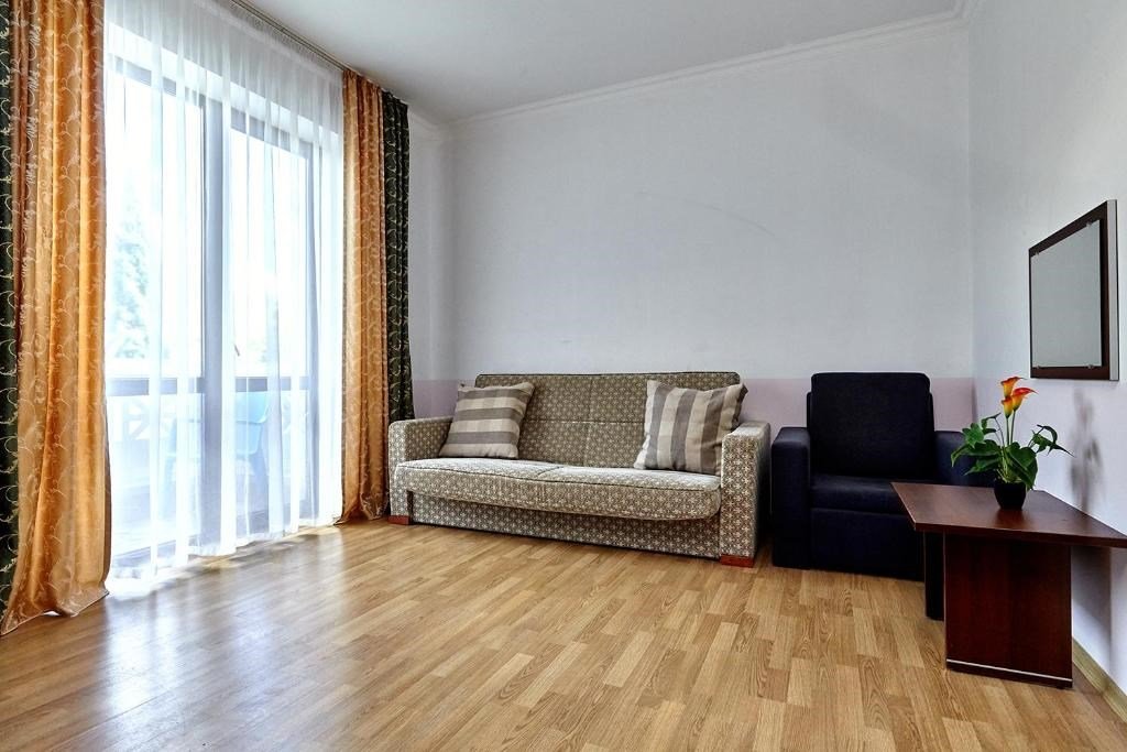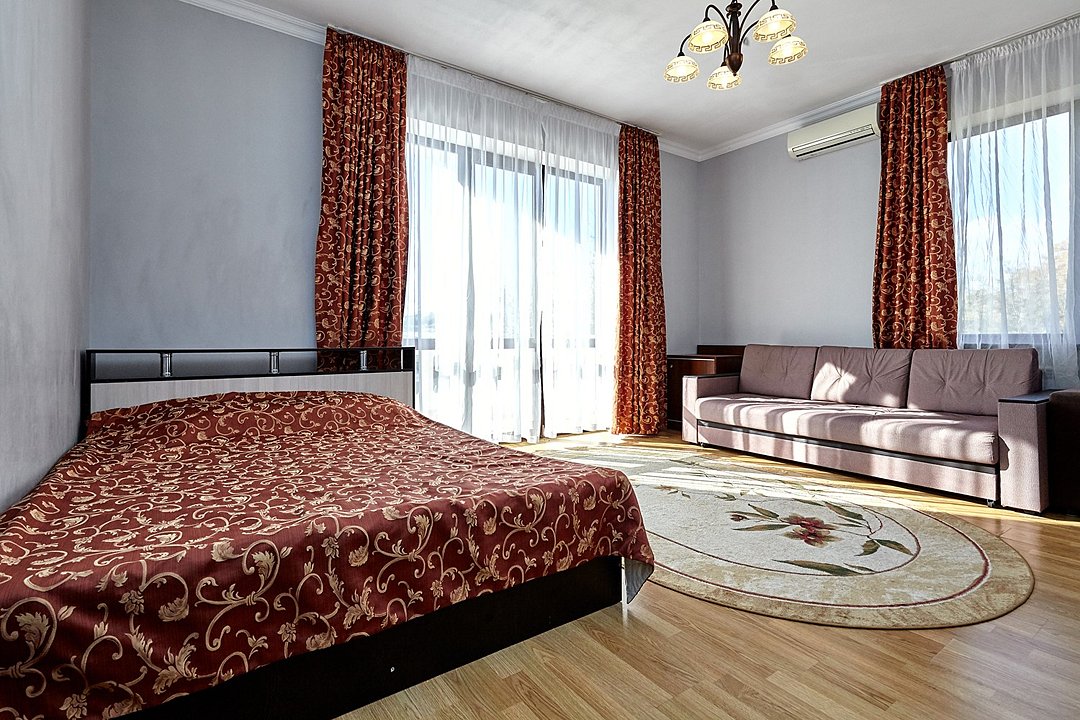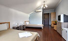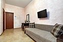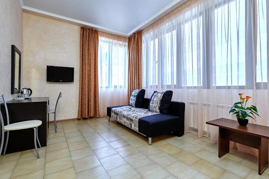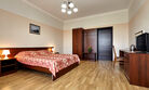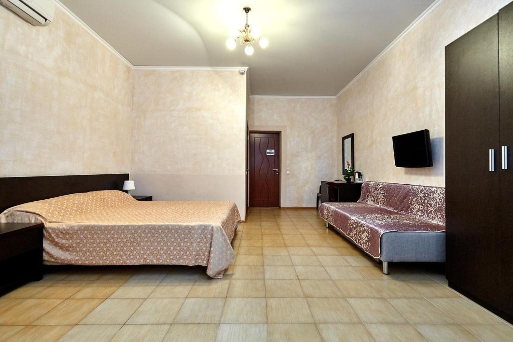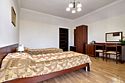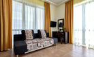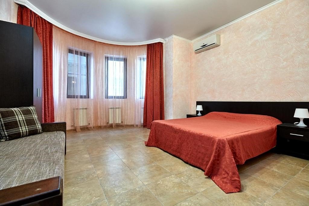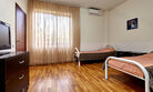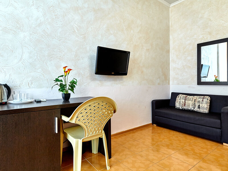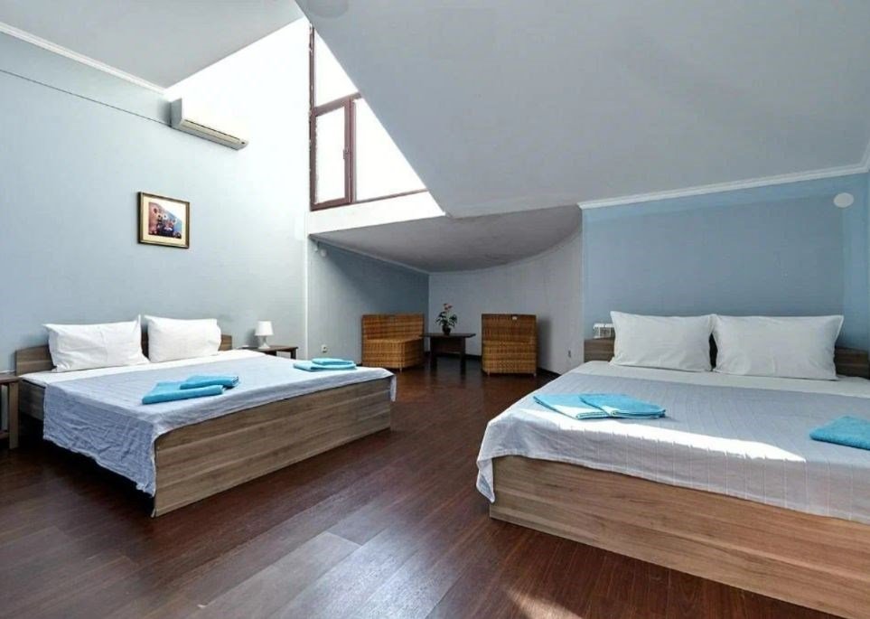 Номера с удобствами оборудованы всем необходимым для комфортного отдыха. Двухспальная кровать и два односпальных дивана.В каждом номере сплит-система, телевизор с плоским экраном,холодильник,электрочайник,набор посуды,фен,собственная ванная комната с душем,зеркало,,стол и стулья,2 тумбочки,шкаф,набор полотенец,2 балкона.Услуги и удобства
