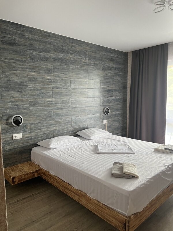 Просторные номера оснащены всем необходимым для вашего удобства, а на общей кухне с газовой плитой Вы сможете приготовить любимые блюда. Насладитесь освежающим купанием в открытом бассейне с видом на море или расслабьтесь на уютных лежаках. Для любителей активного отдыха на территории предусмотрена оборудованная мангальная зона. Для Вашего комфорта также предоставляется бесплатная парковка и Wi-Fi.