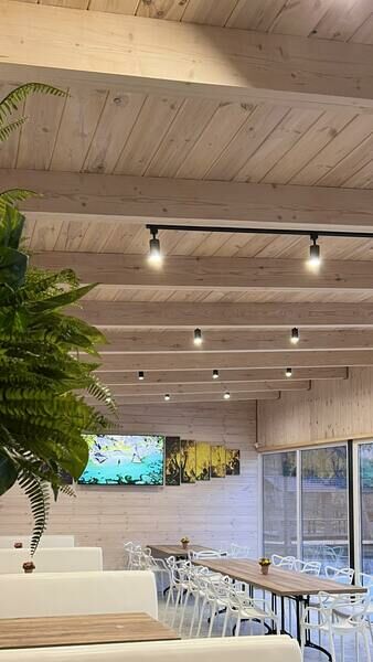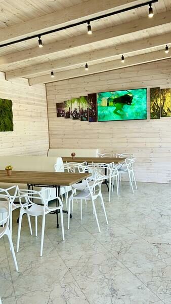 - Закрытая веранда вместимостью до 50 персон со своей полноценной кухней, мангалом и посудой. Сплит система, большой телевизор, музыкальный центр.