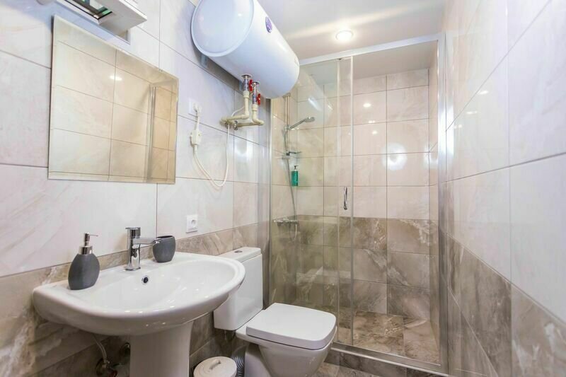 Двуспальная кровать, цифровое телевидение, холодильник, санузел с душевой, постельное белье, полотенце, система кондиционирования, wi-fi.