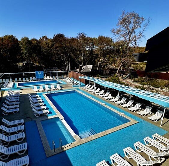 - Большой подогреваемый бассейн для взрослых и детей с лежаками, душ и раздевалки;