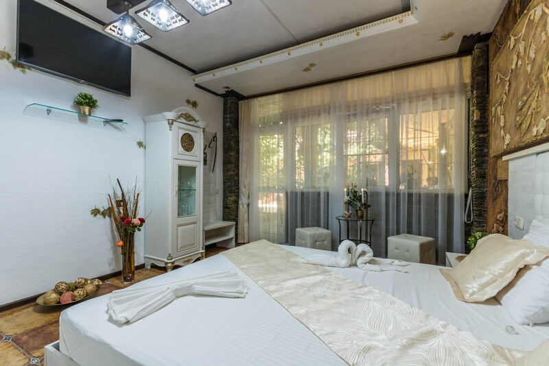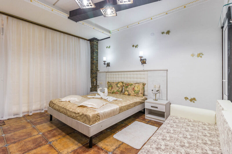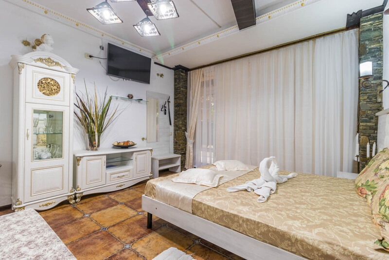 осн. места:двуспальная кровать и двуспальный диван, с/у, душ, х, к, тв.