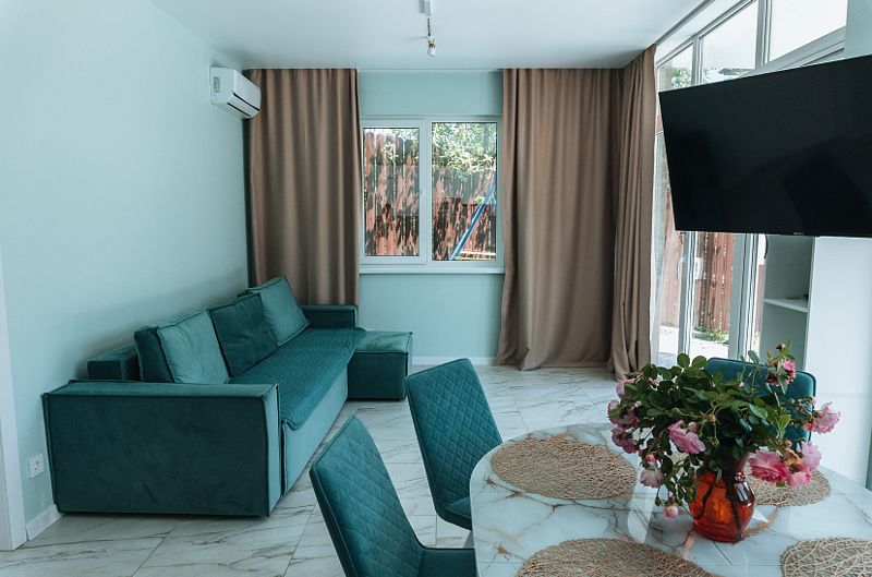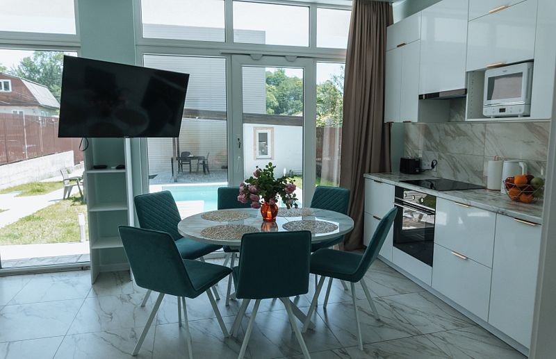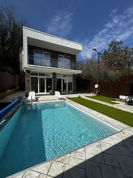 Новая просторная вилла «Стрелец», расположенная в селе Весёлое, идеально подойдёт для отдыха семей и компаний до 10 человек.