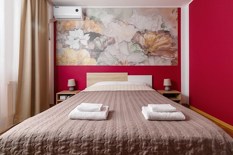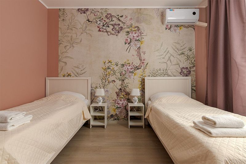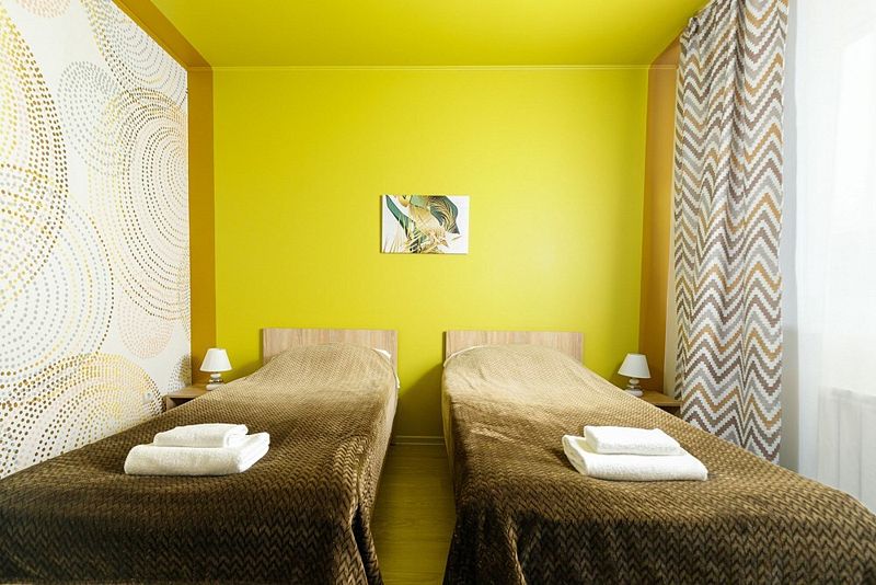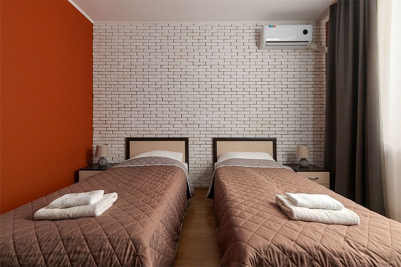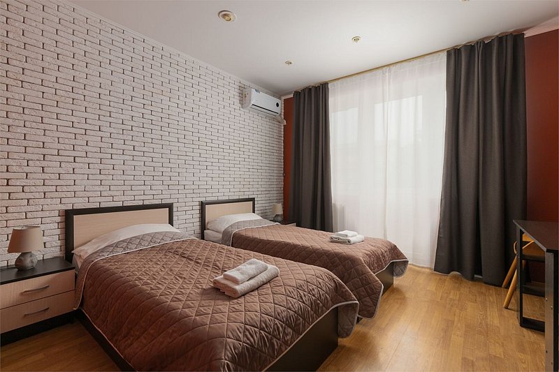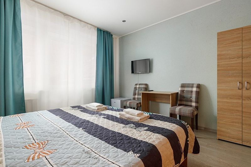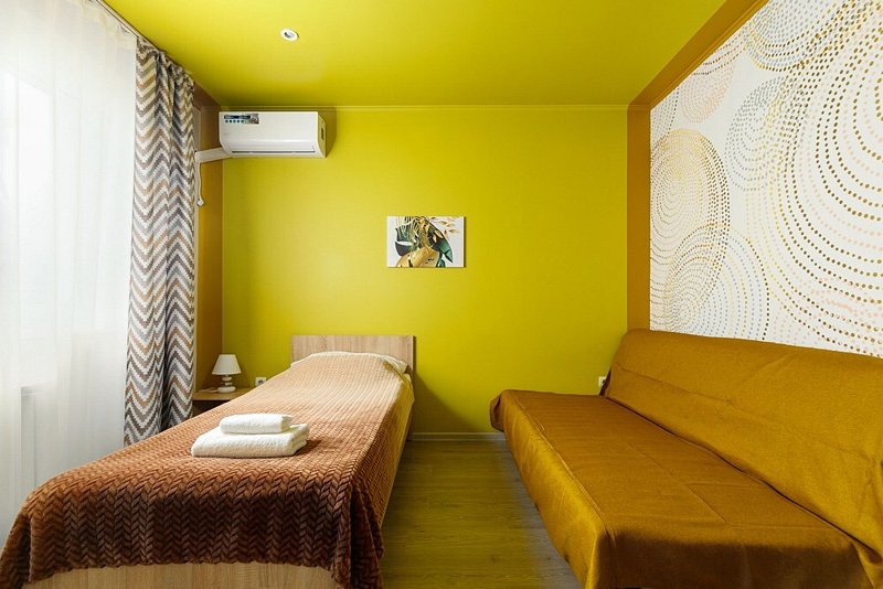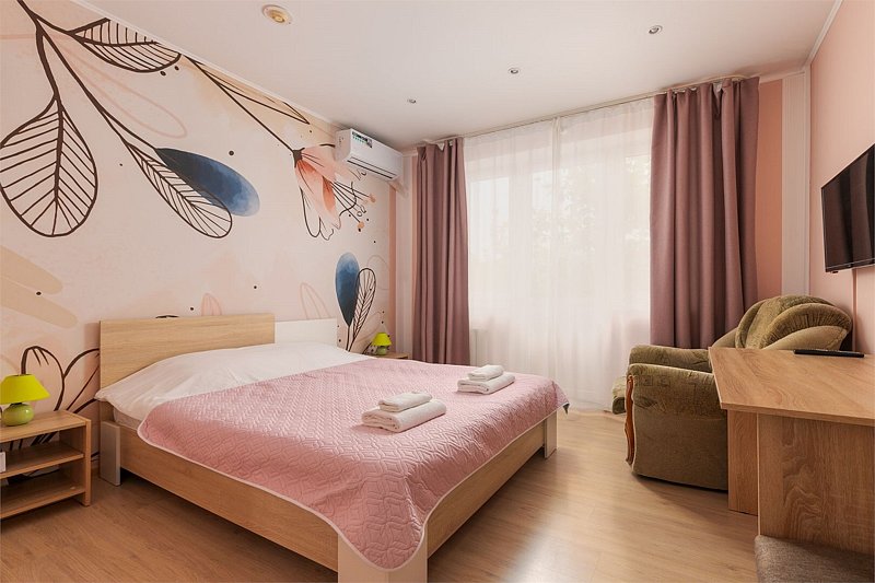 Однокомнатный номер прекрасно подходит для размещения двух взрослых гостей, возможно дополнительное размещение детской кроватки.