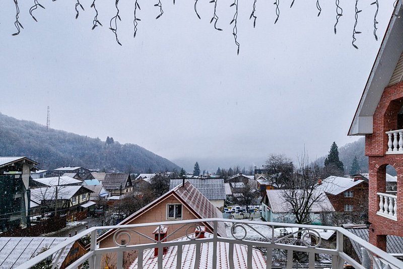 - Удобное расположение. Близость к канатной дороге «Горная Карусель» позволит вам насладиться прекрасными видами Кавказа и катанием на лыжах.