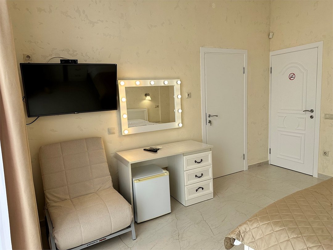 Основные места-двуспальная кровать,кресло-кровать,ТВ,кондиционер,мини-холодильник,с/у(душ+туалет)