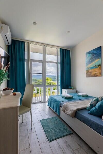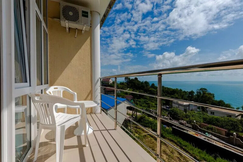 Трехэтажное здание гостевого дома разместилось на возвышенности, поэтому вокруг всегда чистый воздух и свежий ветер, приятно освежающий знойным летом. В распоряжении гостей однокомнатные и двухкомнатные номера с балконом и без. В каждом номере предусмотрен персональный санузел, есть кондиционер, плазменный телевизор, холодильник. Из окон комнат открываются имеют красивые виды на море или горы.