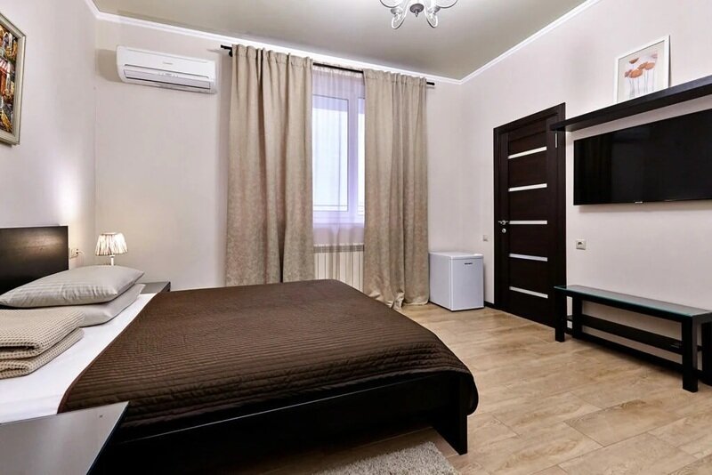 К услугам новые, современные, комфортабельные номера с размещением от 2-х до 6-ти человек. В каждом номере есть все необходимое: сплит-система, холодильник, ТВ, фен, полотенца. Номера с кухней полностью укомплектованы всем необходимым.
