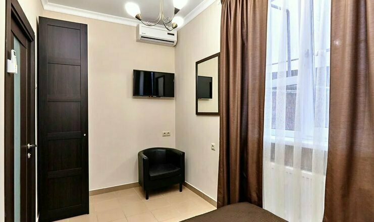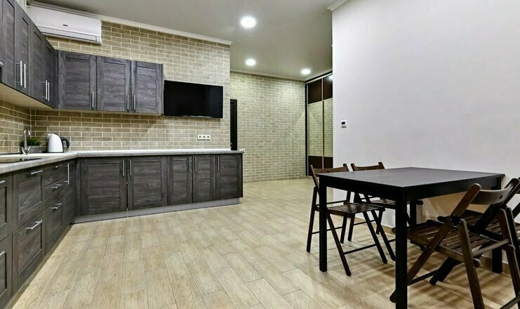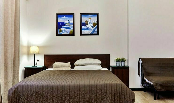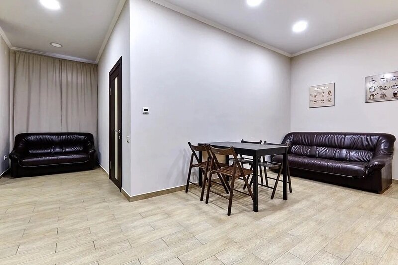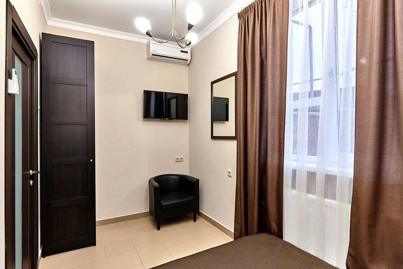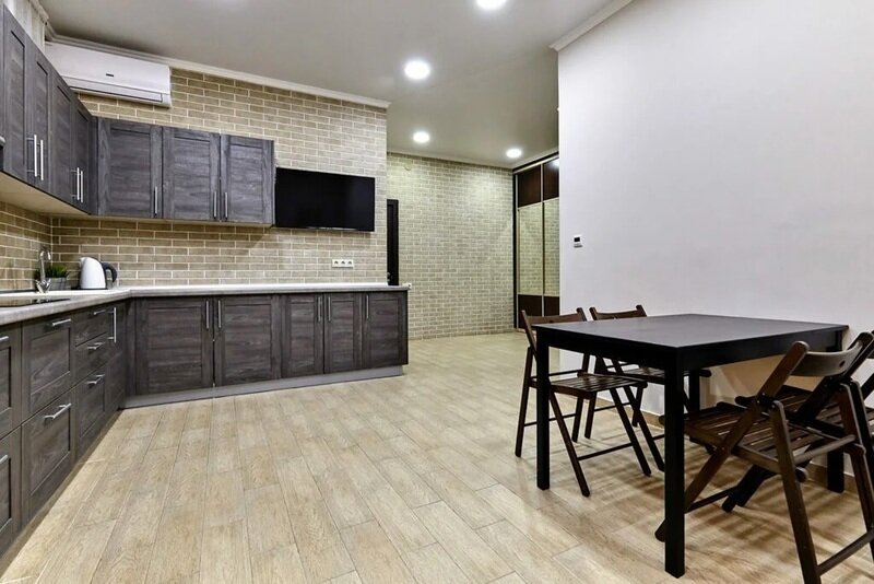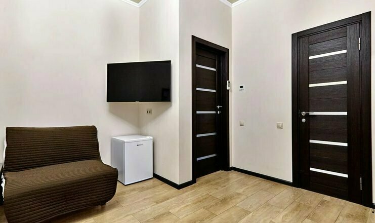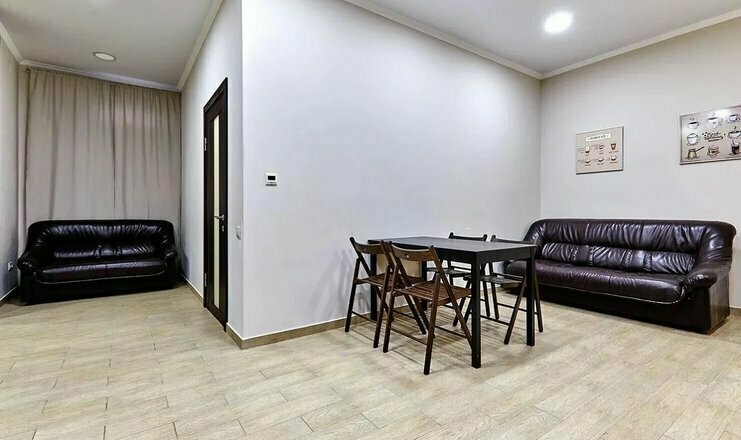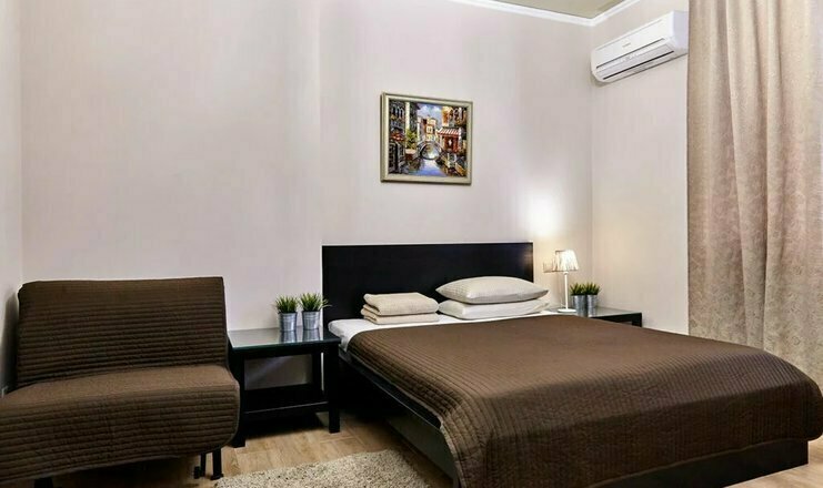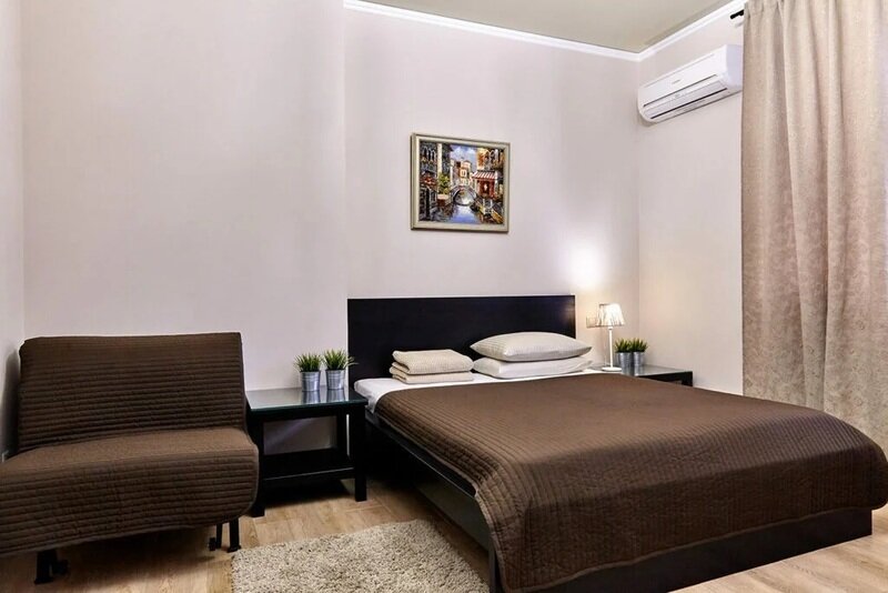Апартаменты расположены на цокольном этаже с отдельным входом, 2 комнаты: спальня и кухня-гостиная.