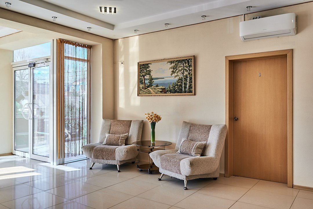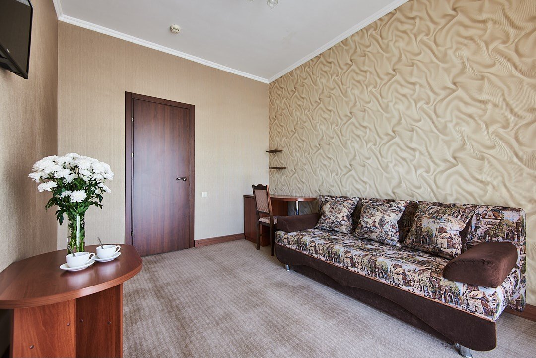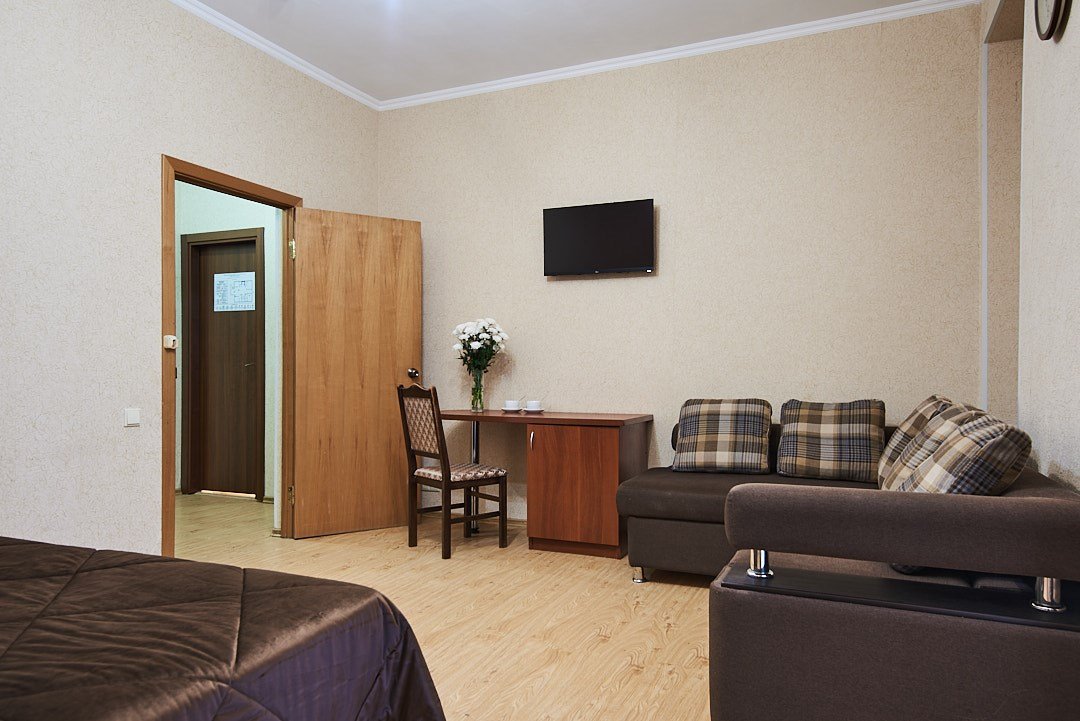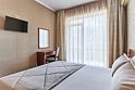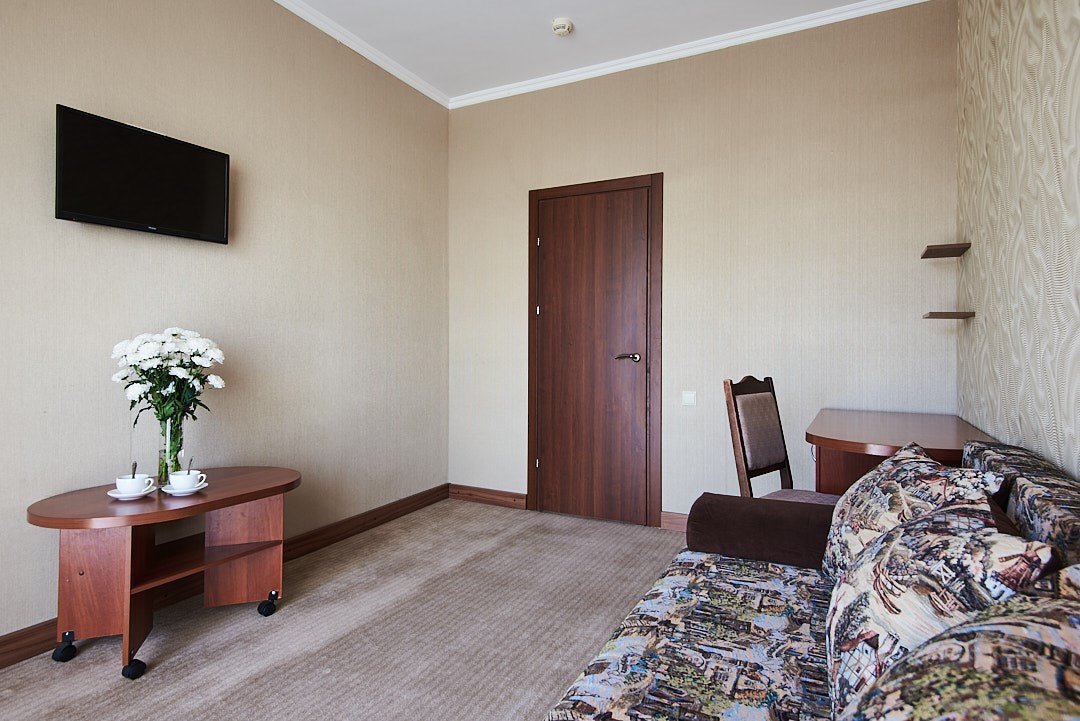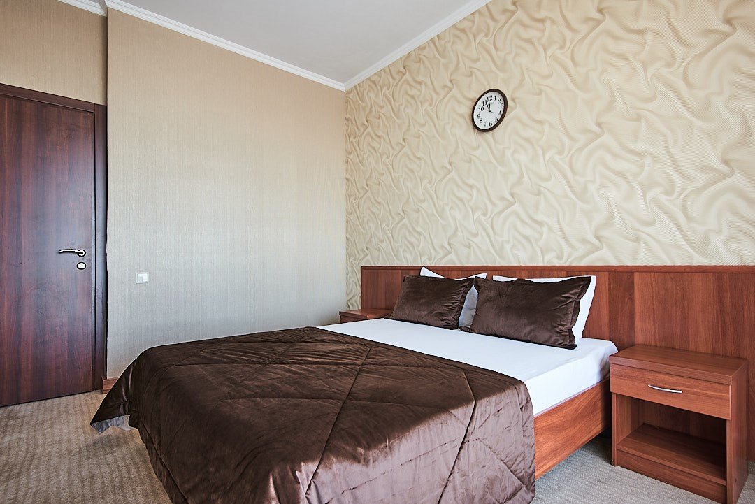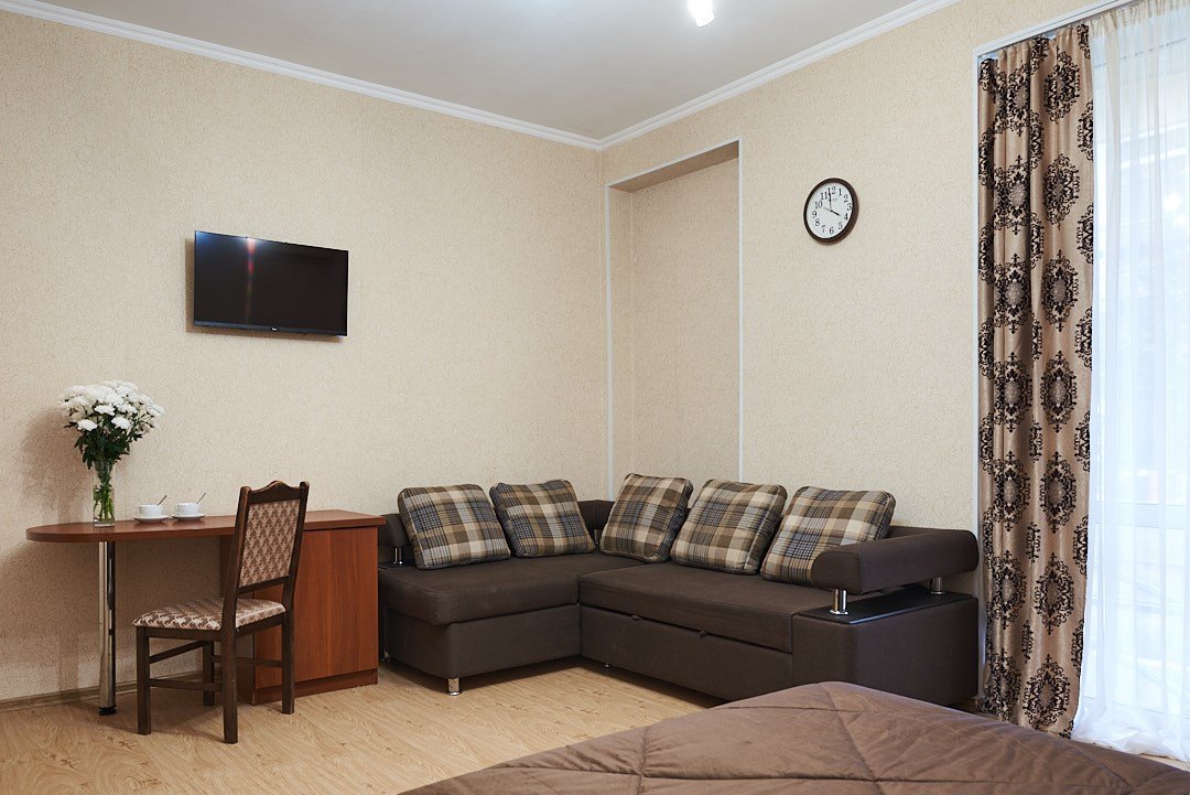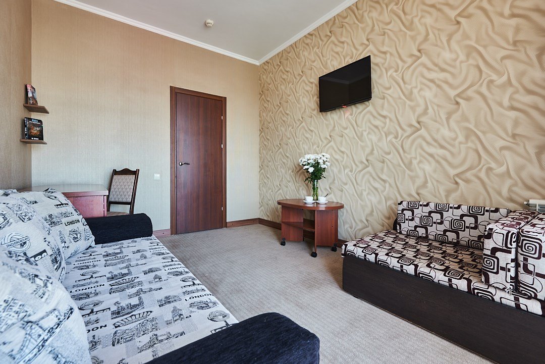 Путешествие с семьейОтличный отель!!!Редко пишу отзывы, но так понравился отдых, что решила написать. Отдыхали в этом отеле недавно, конец мая-начало июня 2022 года. Номер полулюкс с двумя комнатами. В номере две комнаты, в каждой комнате двухспальная комфортная для сна кровать, прикроватная тумба, телевизор, стол, стул, так же на номер один холодильник, wi-fi. Всё необходимое есть, ежедневно убирались и меняли полотенца. На этаже стоит кулер. Большой плюс - в отеле тихо, соседей не слышно. Перед заселение нам показали два номера на выбор, оба имели очень опрятный вид! Порадовало наличие большого балкона, накрывали там стол и сидели долгими тёплыми вечерами. Отель состоит из двух корпусов, на крыше одного из них находится бассейн и лежаки! Ещё отмечу, удачное расположение отеля! Рядом есть ВСЁ: рестораны, кафе, столовые, магазины, аптека. В шаговой доступности остановка общественного транспорта, рынок и самое главное - море!