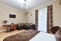 Люкс двухкомнатный с балконом – это комфортный номер с двумя раздельными комнатами. В одной комнате расположена двуспальная кровать, в другой двуспальный диван, кресло-кровать. В номере могут с комфортом разместиться семья из пяти человек + без дополнительного места и без дополнительной оплаты может проживать ребенок в возрасте до 4 лет (5+1). Номер оснащен индивидуальным кондиционером и имеет доступ к сети Wi-Fi. Из оснащения также - телевизор, холодильник, фен, шкаф для одежды. В собственном санузле с душем для вашего удобства есть жидкое мыло, шампунь-гель для душа, туалетная бумага, комплект полотенец (для ног, лицевые и банные). В номере есть балкон.Услуги и удобства