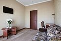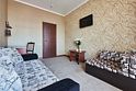 Полулюкс – это номер для 4-х гостей- с двуспальной кроватью и двуспальным диваном. В номере имеется холодильник, телевизор, кондиционер сплит-система, фен, есть небольшой столик, бокалы. В номере собственный санузел, в котором установлен душ. Номера комплектуются набором полотенец на каждого гостя (банное, лицевое и полотенце для ног). В ванной комнате есть жидкое мыло. В номере без предоставления дополнительного места и без дополнительной оплаты может проживать ребенок в возрасте до 4 лет (4+1).Услуги и удобства