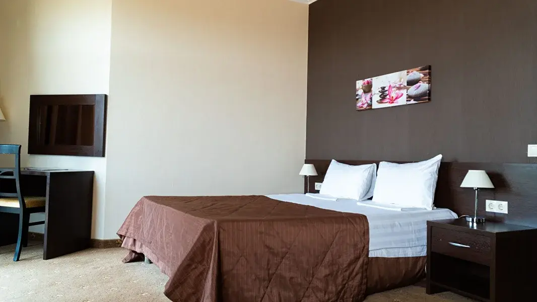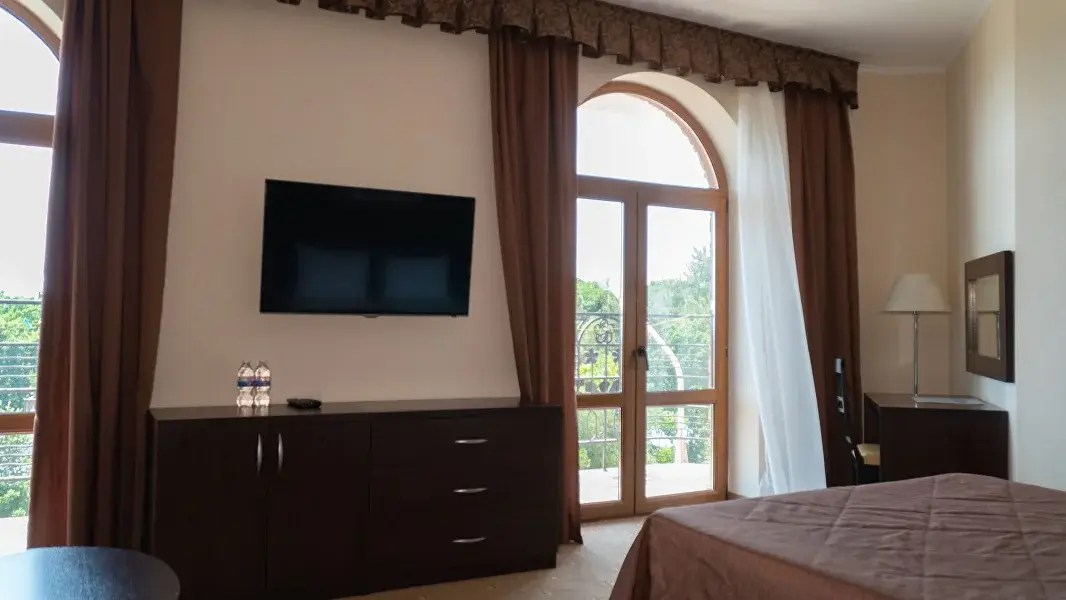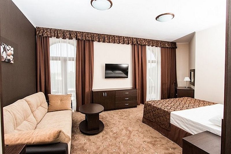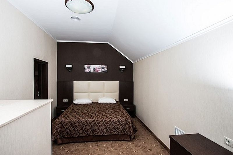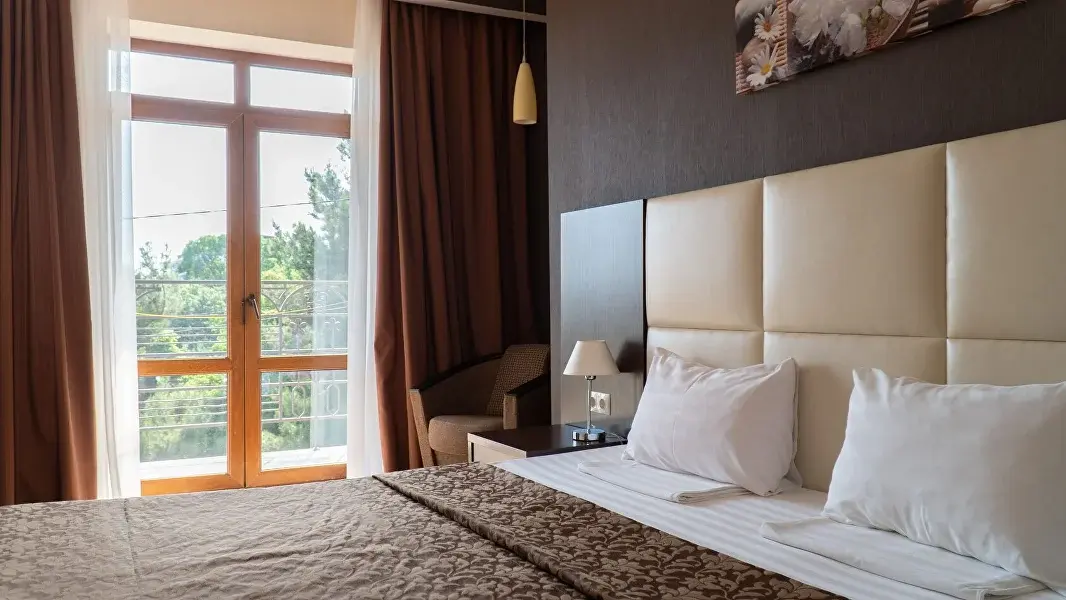 4-х этажный корпус гостевого дома построен в форме буквы "П". Номерной фонд включает в себя уютные современные номера различных категорий: Стандарт, Полулюкс, Люкс и Апартаменты - как для индивидуального так и для семейного проживания. Каждый из них оборудован хорошей мебелью, сплит-системой или системой общего кондиционирования, телевизором, мини-холодильником, санузлом с душем и туалетными принадлежностями.