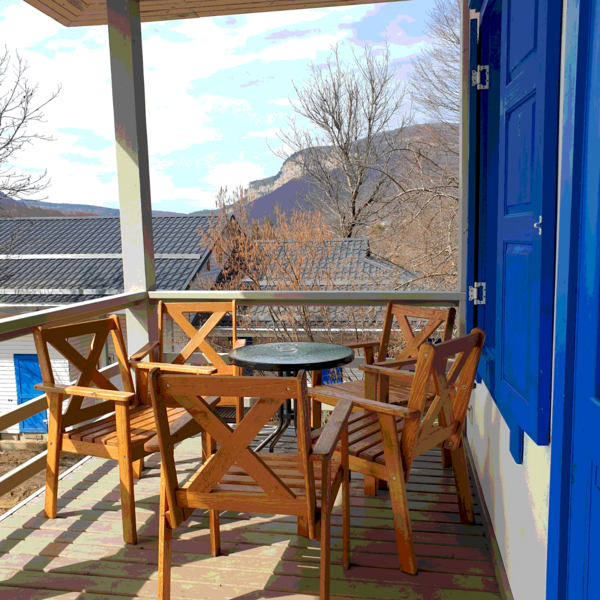 Путешествие с семьейЗамечательное место!Шикарные домики - чисто и всё под рукой. Очень порадовал дополнительный сервис: возможность использовать стиральную машину (с сушилкой!) и большой костёр. Очень понравилось расположение - удобно пройтись к различным местным достопримечательностям. В номера можно заказать пиццу. Совсем рядом можно покупаться в горной реке! Чувствуется, что персонал и владельцы комплекса стараются сделать отдых максивально комфортным. )))