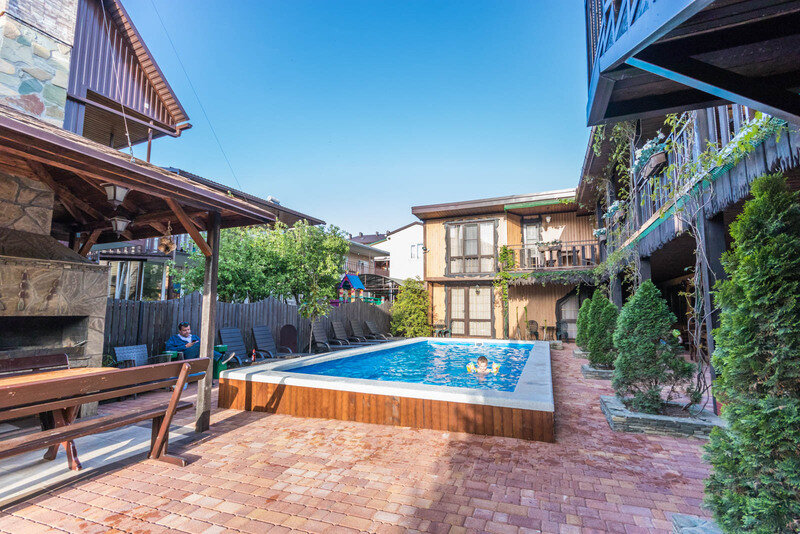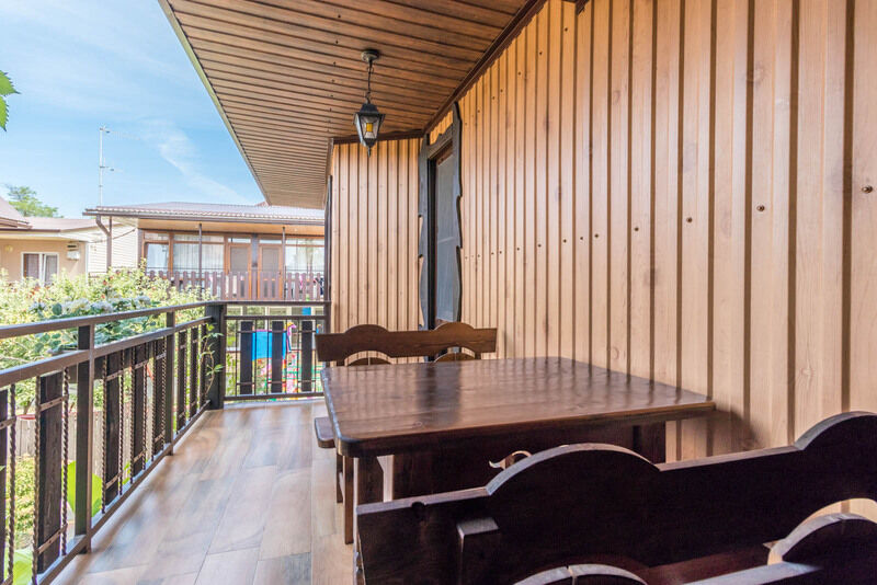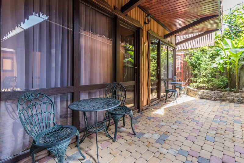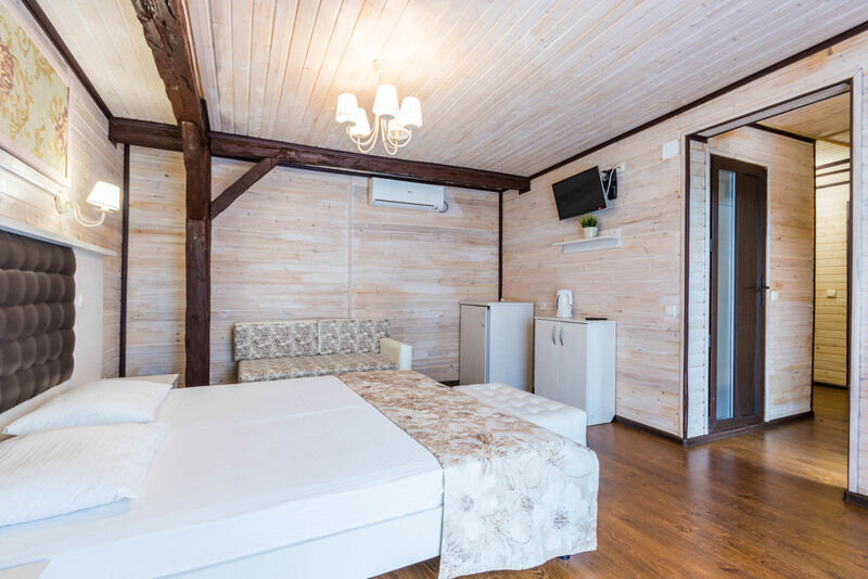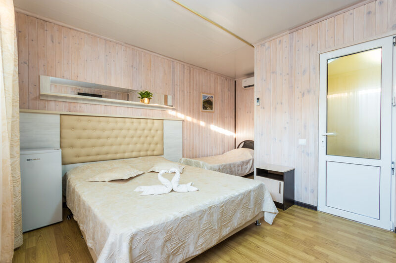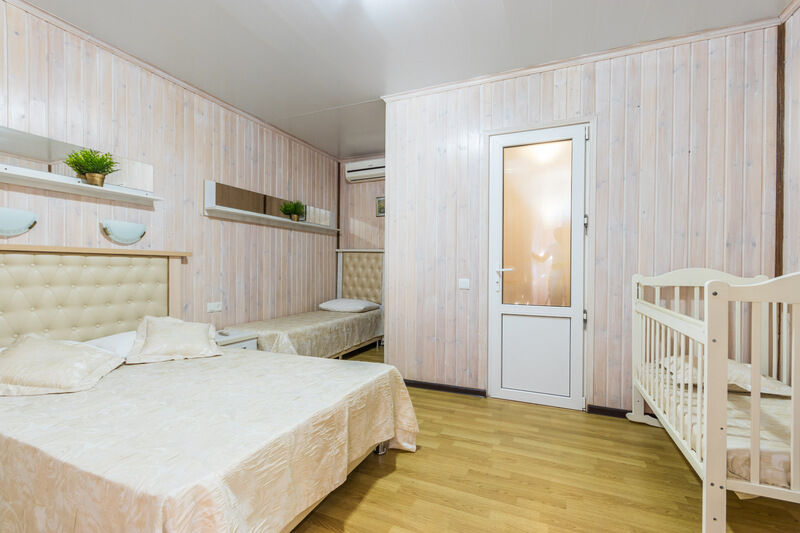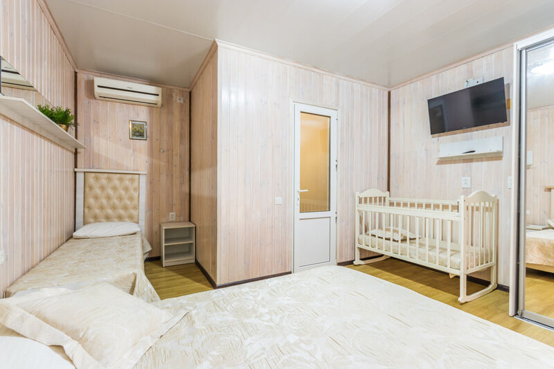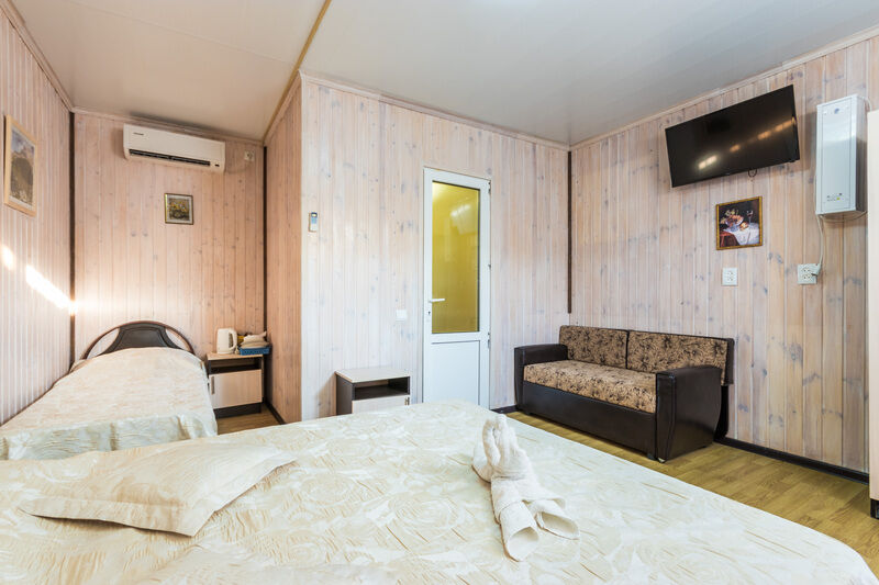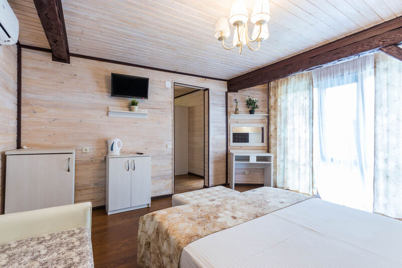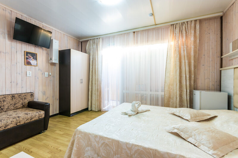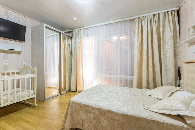 Трехэтажный гостевой дом занимает закрытую благоустроенную территорию. Гостей ожидают уютные стильные номера разной категории комфорта, при желании отдыхающие могут заселиться в шестиместный дом. В каждом номере имеется индивидуальный санузел, кондиционер, плазменный телевизор.