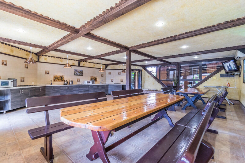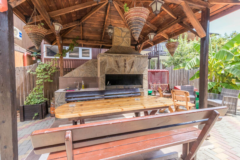В гостевом доме оборудована общая кухня, где отдыхающие могут самостоятельно приготовить еду, а на улице предусмотрена зона для барбекю. В распоряжении гостей открытый бассейн с подогревом, рядом шезлонги для принятия солнечных ванн. Дети могут провести весело время на игровой площадке, а автомобиль можно будет разместить на огороженной, охраняемой парковке в 200 метрах от гостевого дома.