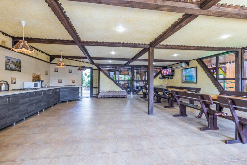 Всего в 500 метрах от гостевого дома находится поселковый пляж. На галечном пляже установлены раздевалки, шезлонги, лежаки и навесы, работает кафе, есть спасательный пост и медпункт.