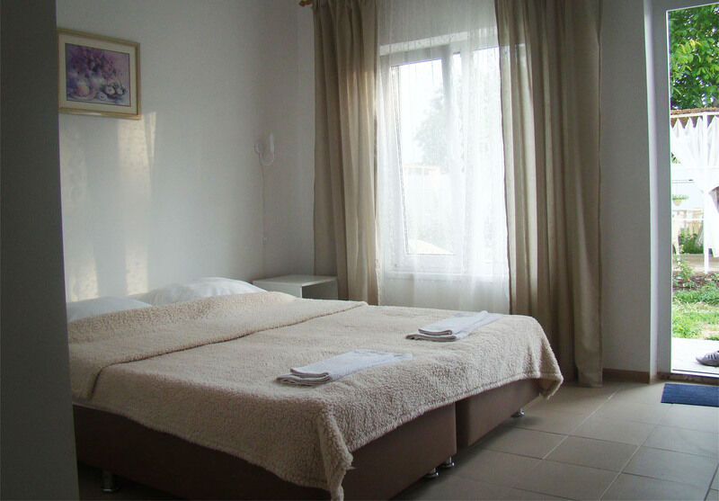Путешествие с семьейПросто отлично!Отличный вариант для семейного отдыха. Прекрасные условия в семейных номерах. Есть почти все кухонные принадлежности. Чистые кровати, новая техника. Отличная еда, за умеренную цену (всего 250 рублей с человека). И завтраки и обеды и ужины превзошли наши ожидания. Территория ухожена. Мест на парковке достаточно. Машину можно припарковать за воротами гостиницы ( есть даже система видеонаблюдения и машину можно смело оставлять за забором). До моря можно добраться пешком, но мы предпочитали автомобиль.
