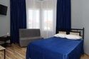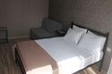 В номере одна двуспальная кровать, диван-кровать односпальный как основное место, шкаф для одежды, прикроватные тумбы, ТВ, холодильник, фен, кондиционер.