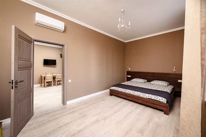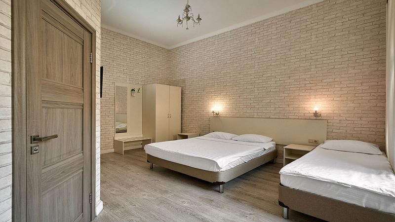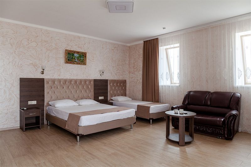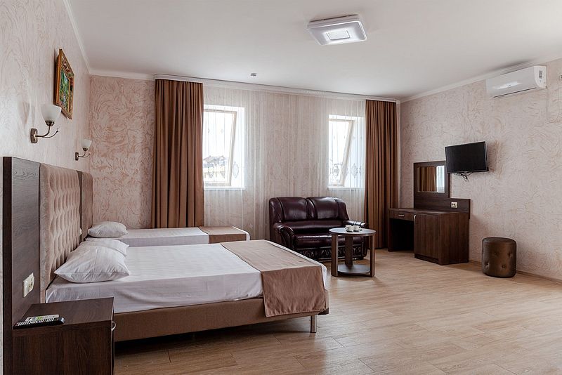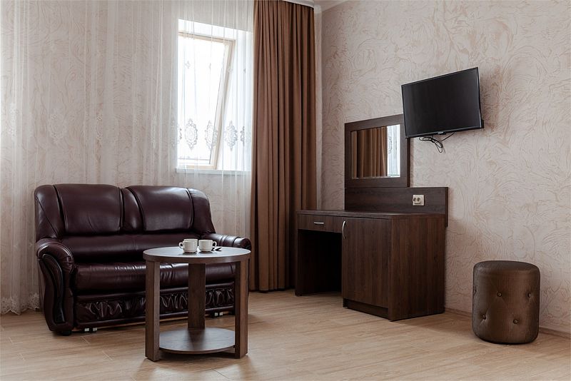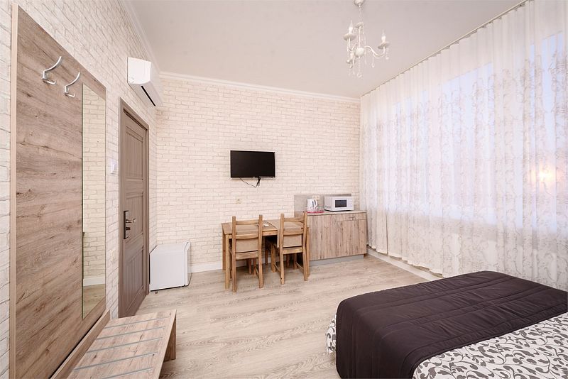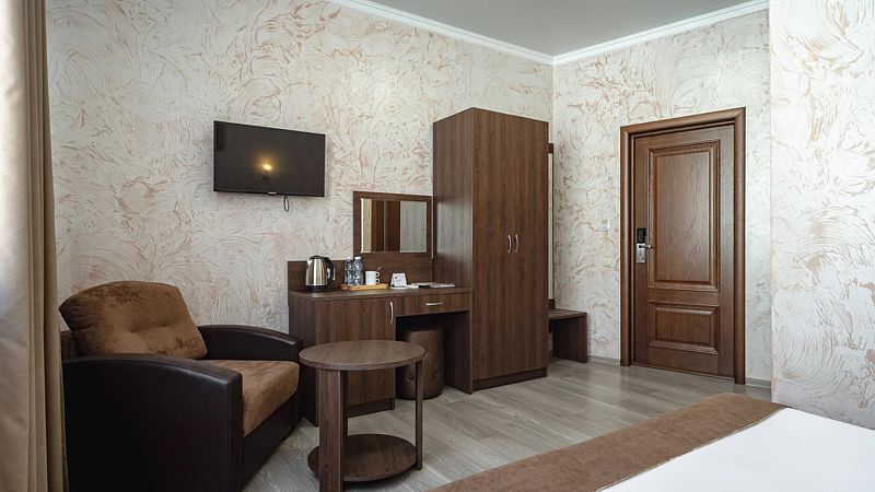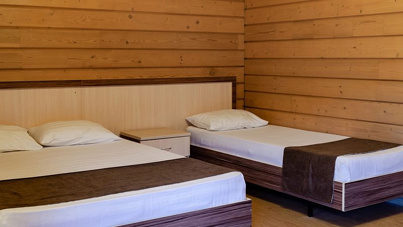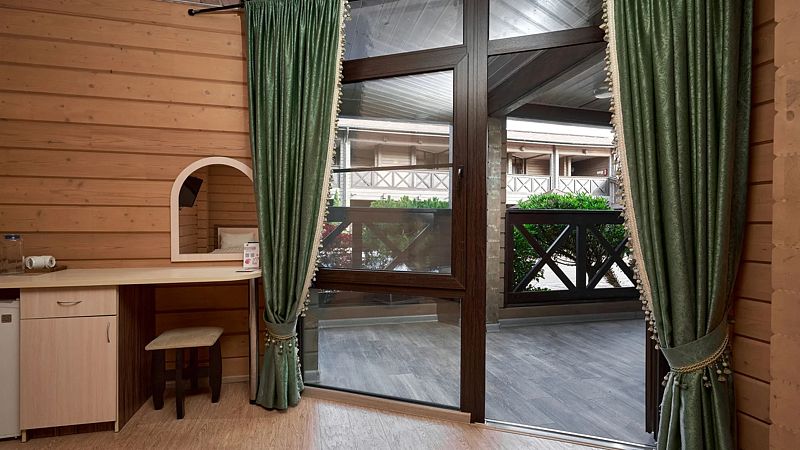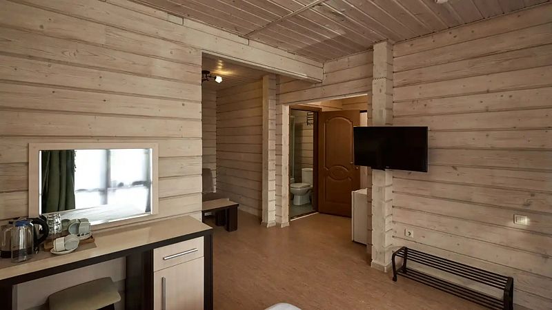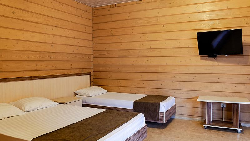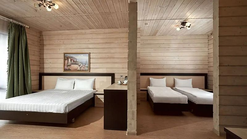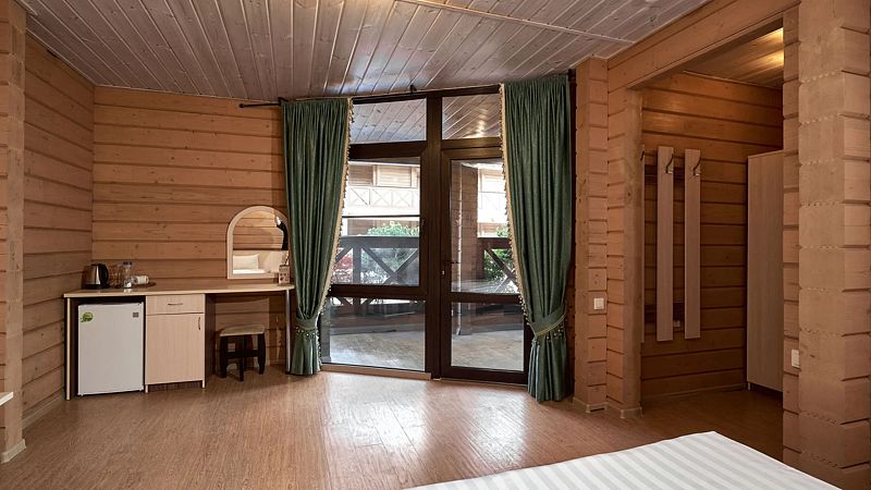 Здание отеля состоит из трех этажей. Находится оно на закрытой территории. Отдыхающим предлагается 29 номеров Люкс и Стандарт. В них могут разместиться от двух до четырех человек. Отделка номеров деревянная. Они оснащены холодильниками, телевизорами и кондиционерами.