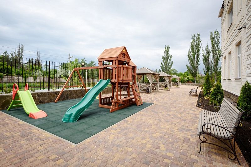 На территории вилы имеется отдельный бассейн для детей. Родители могут арендовать стульчики для удобного кормления малышей и кроватки.
