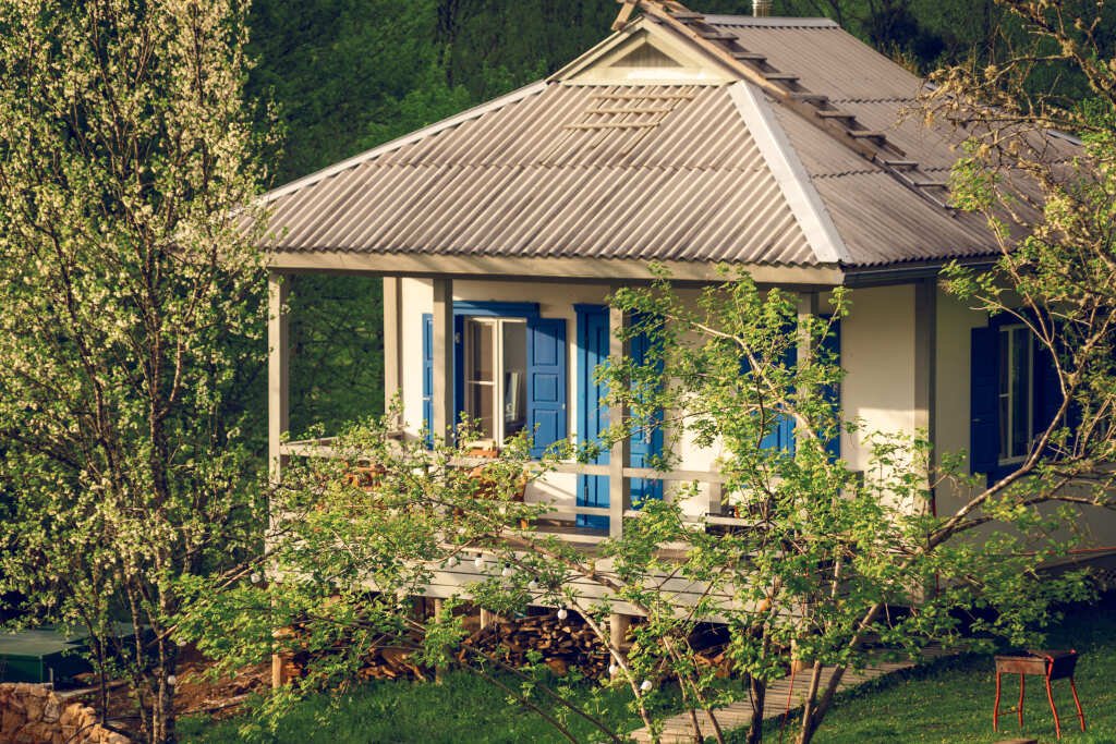 Дом с камином, кухней и верандой для проживания до 5 человек.