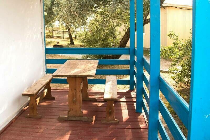 Расположиться гости могут в трехместных и четырехместных домиках. В доме есть санузел, душ, кондиционер и холодильник. Возле домиков есть мангалы в тени деревьев. Есть общая кухня, она оборудована всем инвентарем и бытовыми приборами. Так же есть продуктовый магазин.