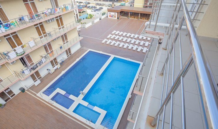 Тип бассейна: открытый бассейнВода в бассейне: подогреваемый бассейнРядом с бассейном: шезлонги, бар у бассейнаВремя работы: от 08:00 до 23:00Бассейн с детским отделением работает сезонно: 20.05 – 20.09.