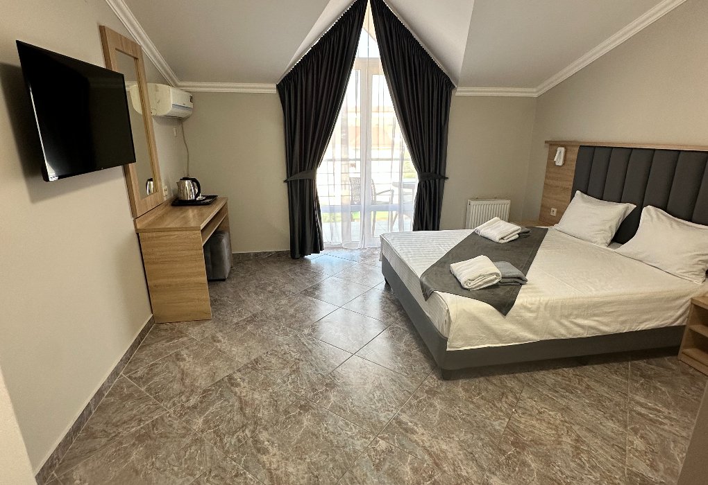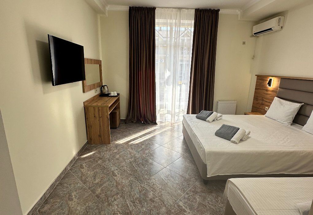 Гостиничный комплекс, расположенной на закрытой благоустроенной территории, включает в себя 2 шестиэтажных корпуса с лифтом. Большой номерной фонд рассчитан на одновременное размещение 500 гостей. Просторный комфортабельные номера оборудованы современной техникой – сплит-системой, ЖК-телевизором, холодильником, удобной мебелью, в собственных ванных комнатах с душем есть все необходимые туалетные принадлежности.
