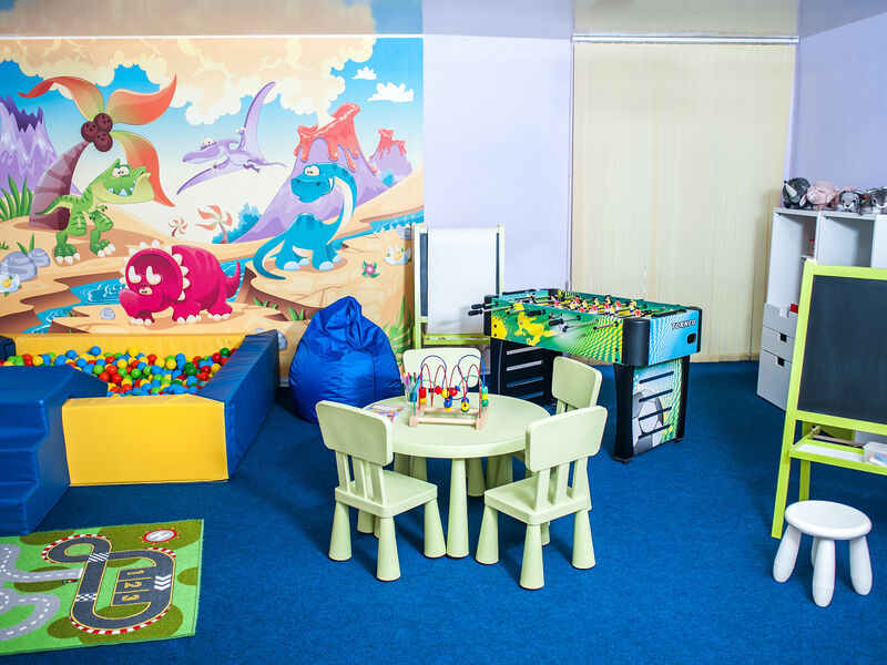 Для детей организована игровая площадка и детская комната с воспитателем, есть специальное отделение в общем бассейне, ежедневно маленьких гостей развлекают аниматоры, предусмотрен прокат стульчиков и прогулочных колясок.