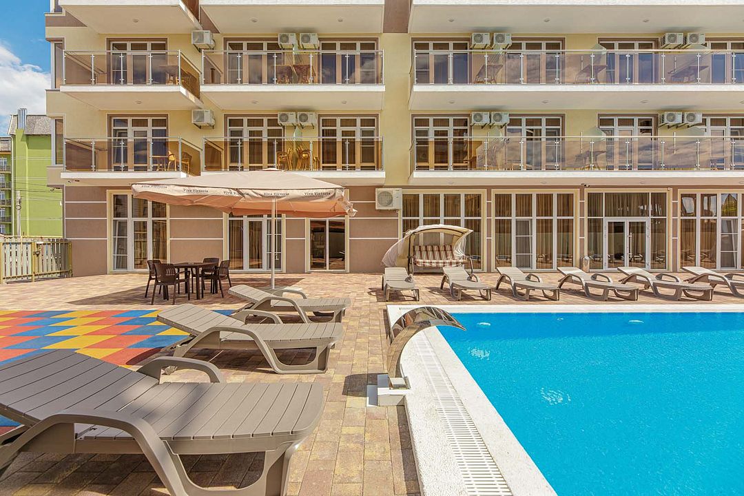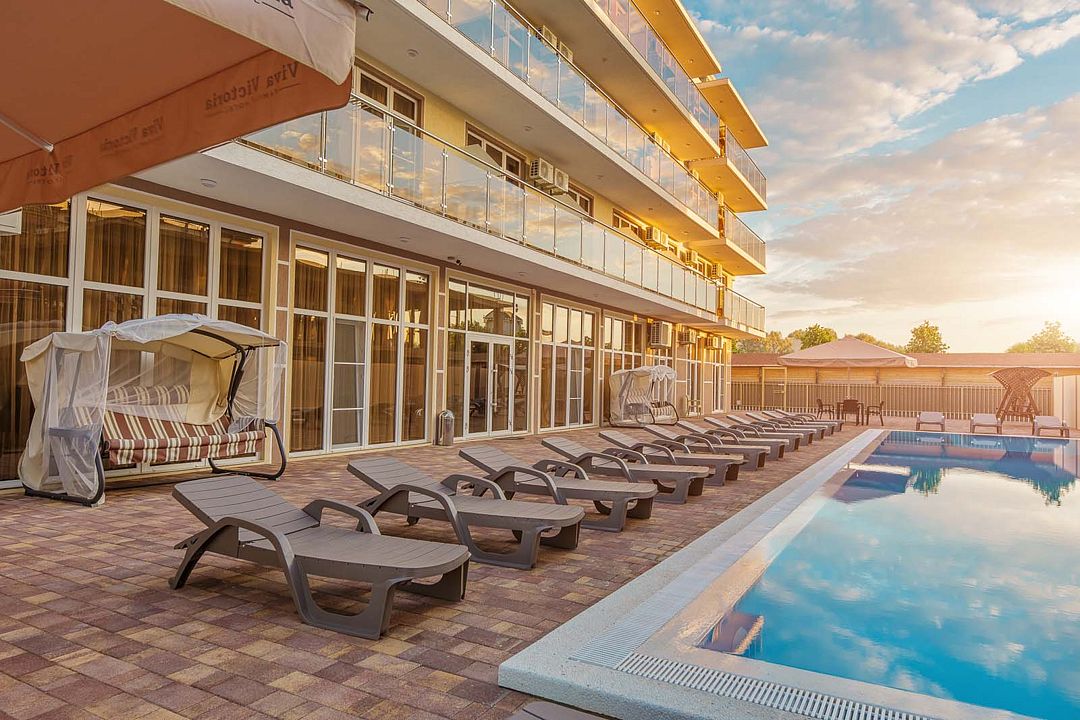 Отель Viva Victoria Family находится в самом центре курортного поселка Витязево. В шаговой доступности — главная туристическая улица — бульвар Паралия, аквапарк «Олимпия», парк аттракционов. Недалеко разместился аэропорт, а в 10 минутах езды железнодорожный вокзал.