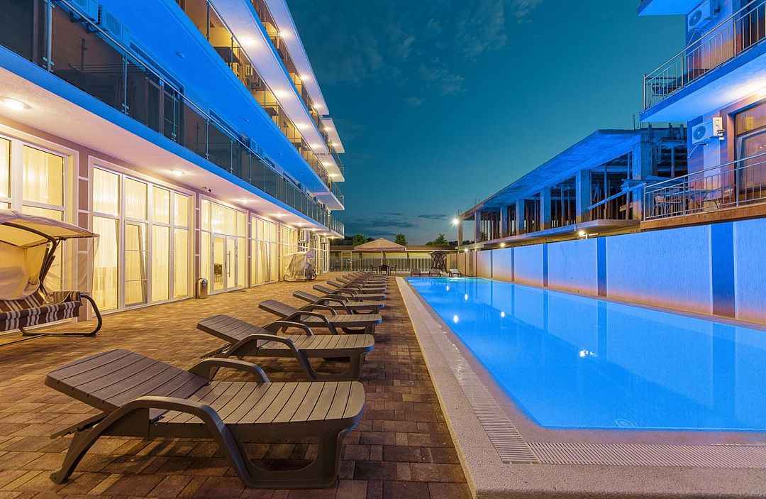 Тип бассейна: открытый бассейнВода в бассейне: подогреваемый бассейнРядом с бассейном: шезлонги, зонтикиВремя работы: от 09:00 -