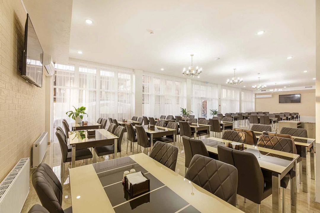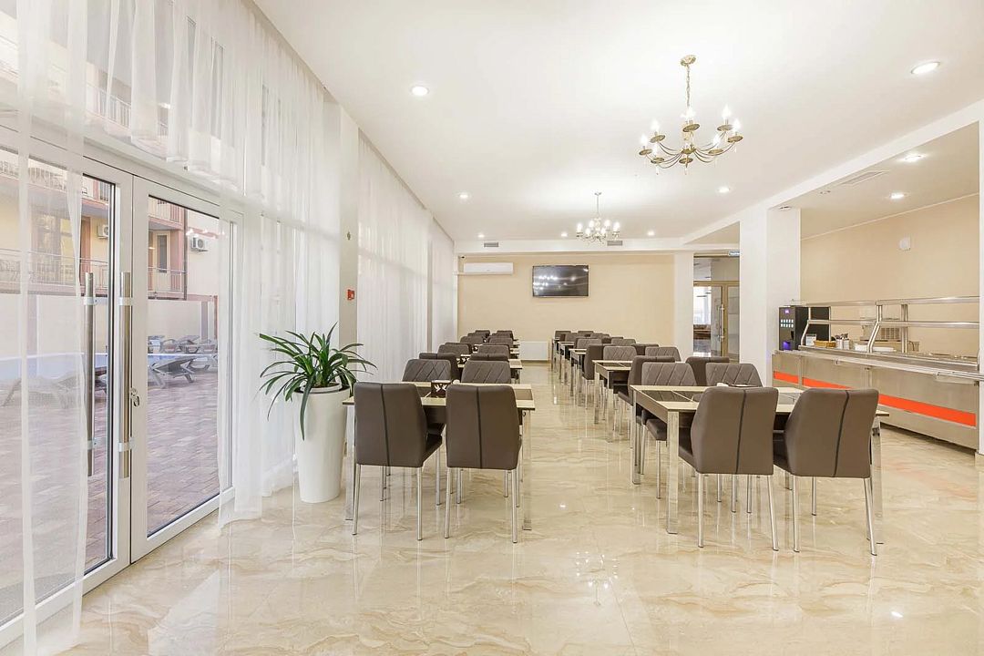 В отеле работает столовая, есть уличный подогреваемый бассейн, возле корпуса организованы парковочные места для автовладельцев, доступна сеть wi-fi.