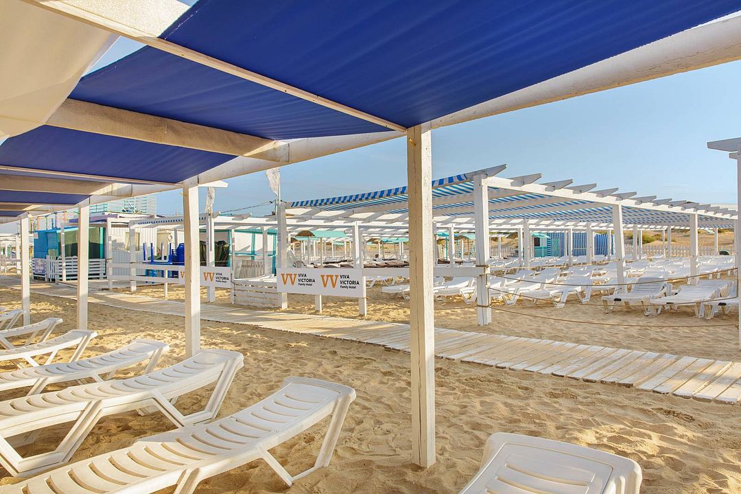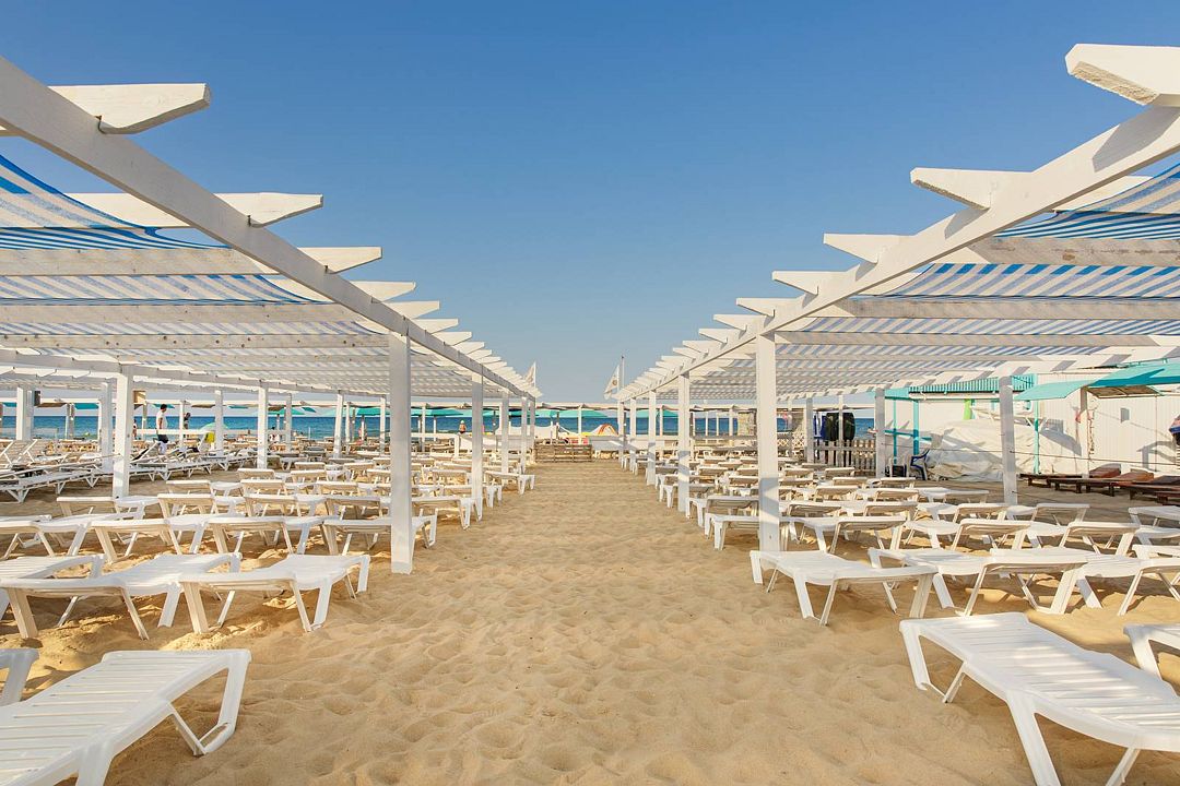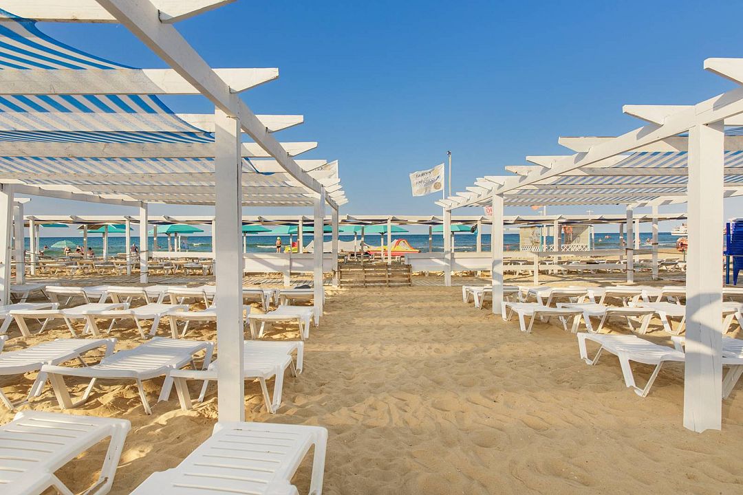- пользование собственной пляжной территорией, оборудованной лежаками и навесами;