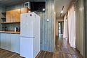 Кухонный уголок оборудованный современной техникой (маленький холодильник, СВЧ, электрический чайник).