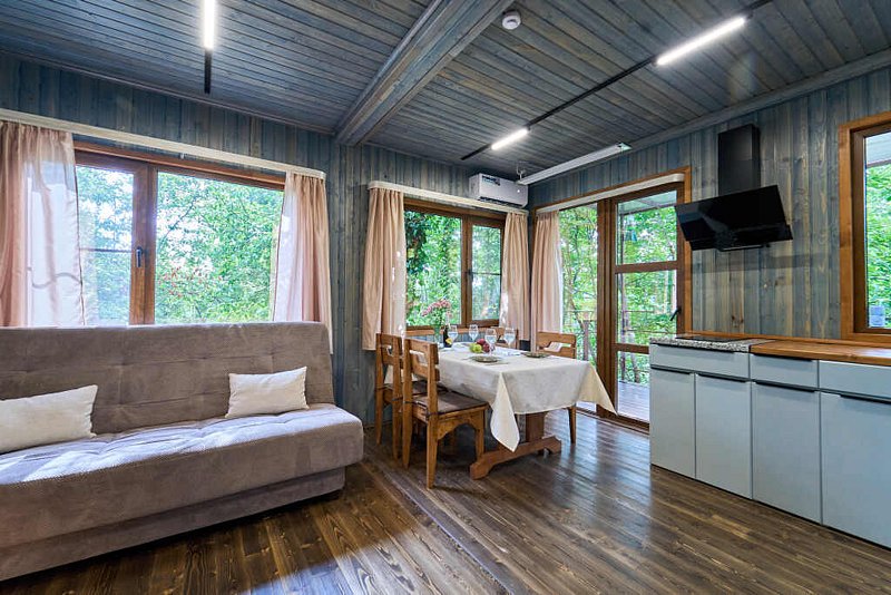 Путешествие с семьейКрутое место в СочиЯ могу охарактеризовать данную локацию как МЕСТО СИЛЫ! Тишина, покой, потрясающая природа, очень комфортные дома со всем необходимым для проживания, баня с чаном (в прохладное время его можно подогреть). Рядом, в пешей доступности, воронцовские пещеры и каньон царские ворота (побывали только в каньоне, красота неописуемая!!!) Обязательно приедем снова и посетим пещеры, дюже интересно. Что ещё понравилось, так это то, что дома сделаны из натуральных материалов, внутри пахнет деревом!!!