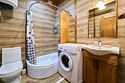 Санузел с ванной, стиральной машиной и водонагревателем на 80 л, средства личной гигиены.