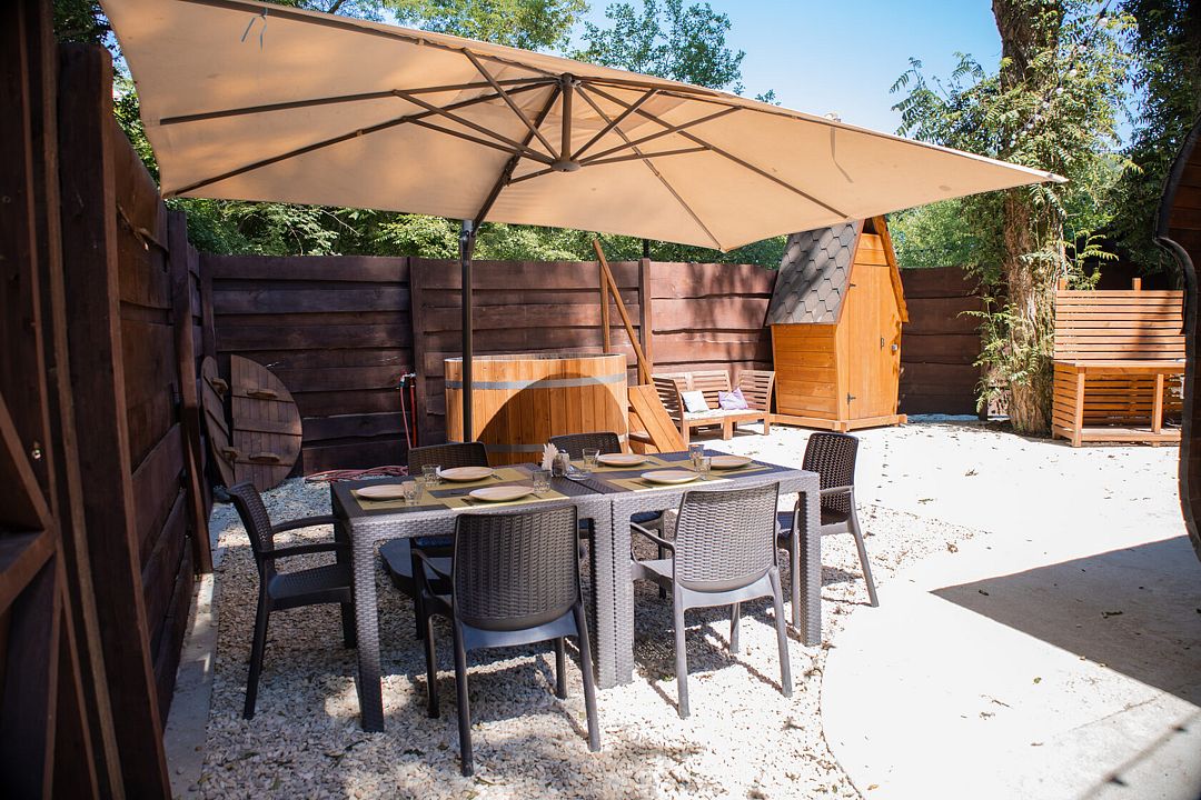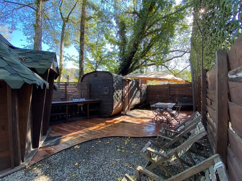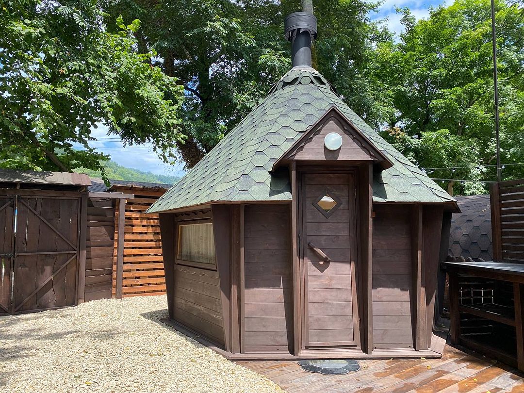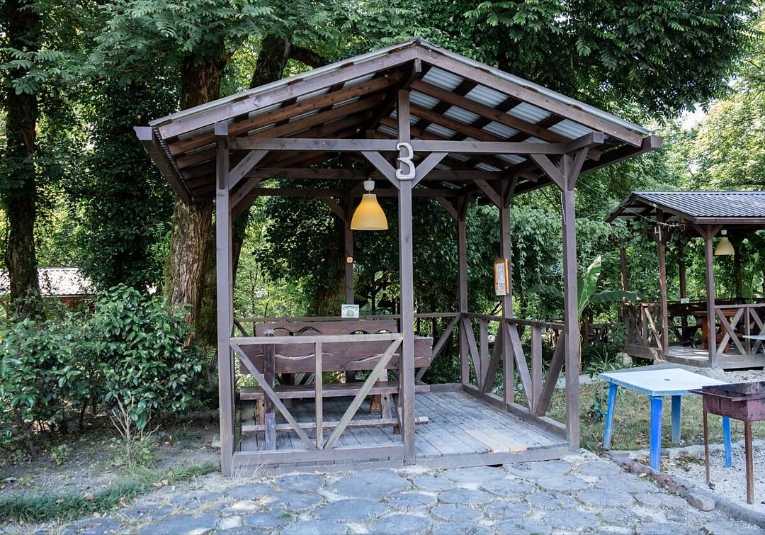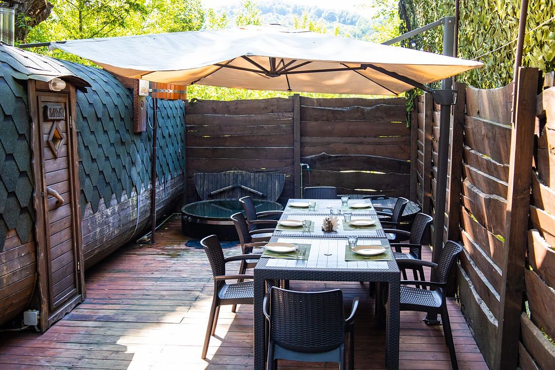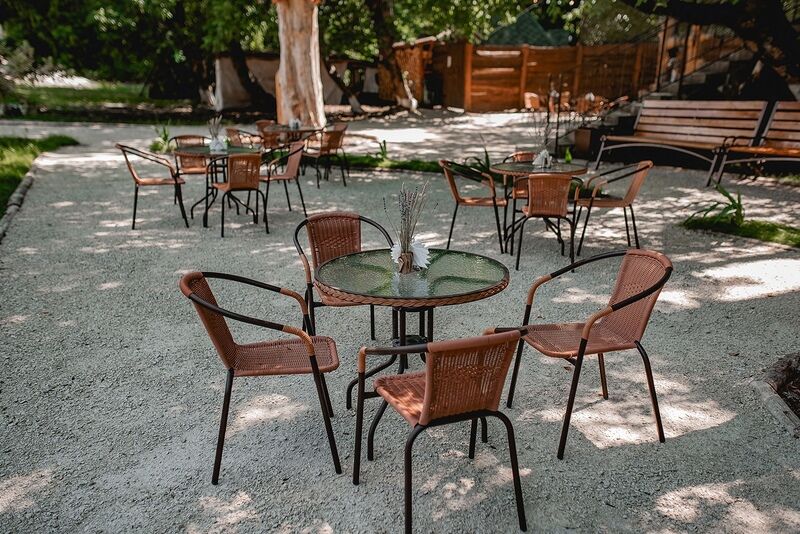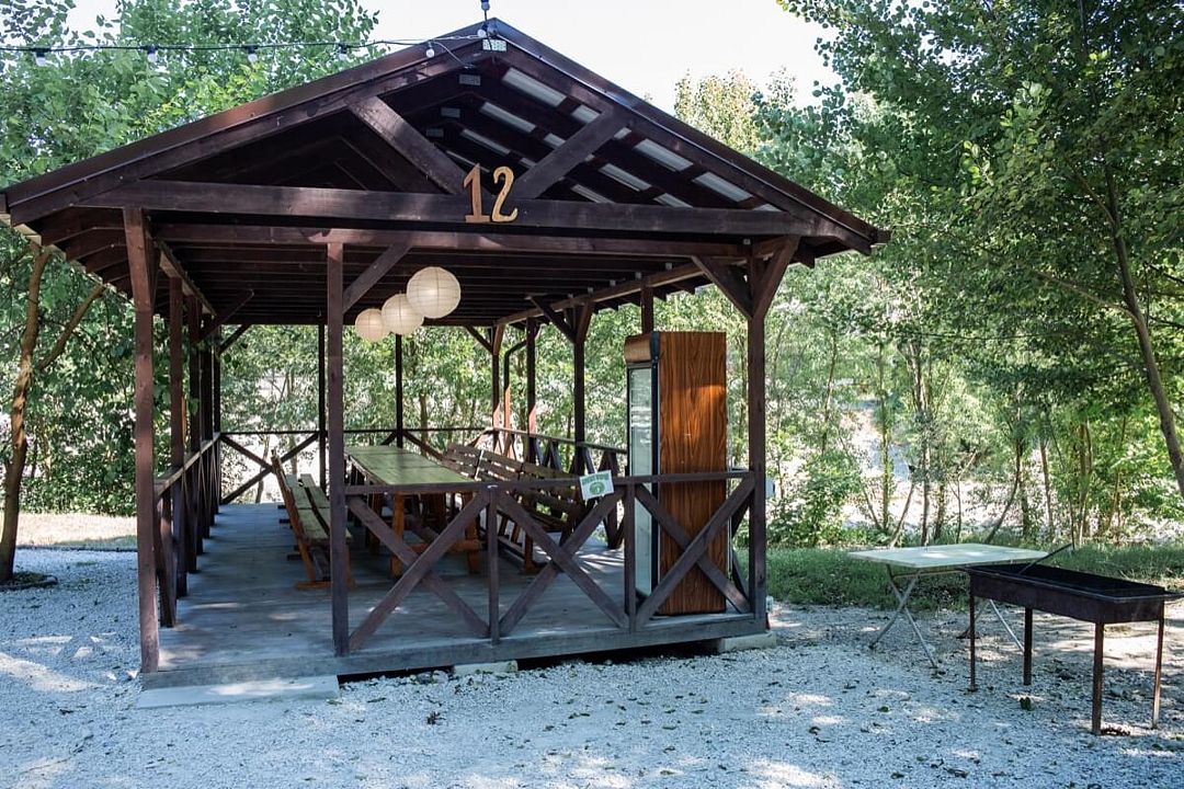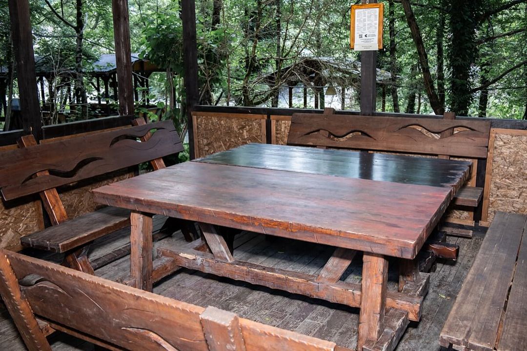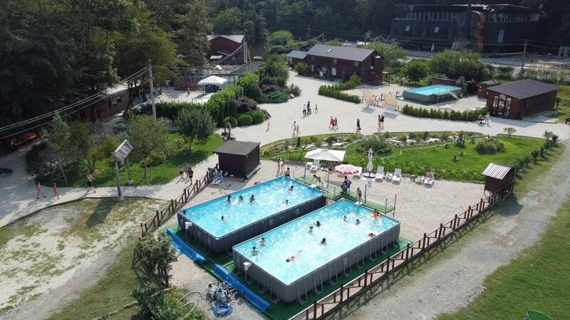 База отдыха расположена в предгорьях Кавказа, вдали от загруженных автомагистралей и моря, рядом с небольшой горной речкой.