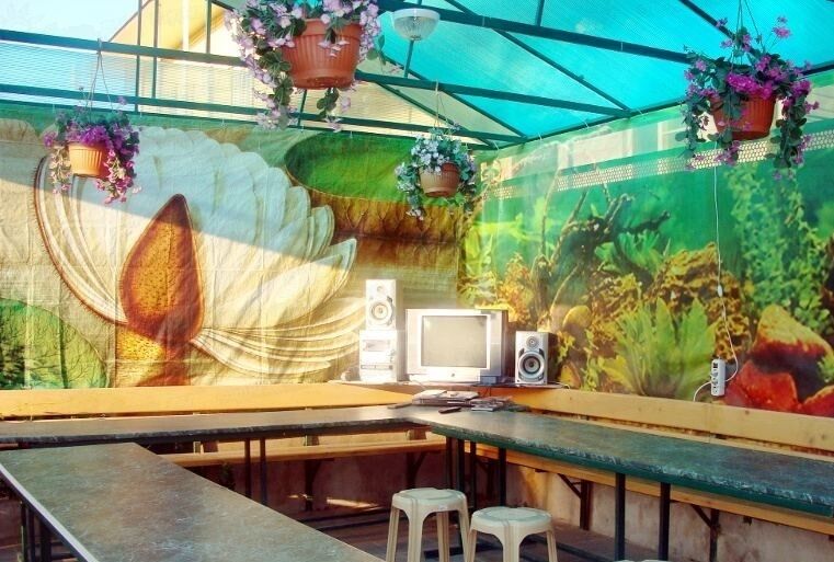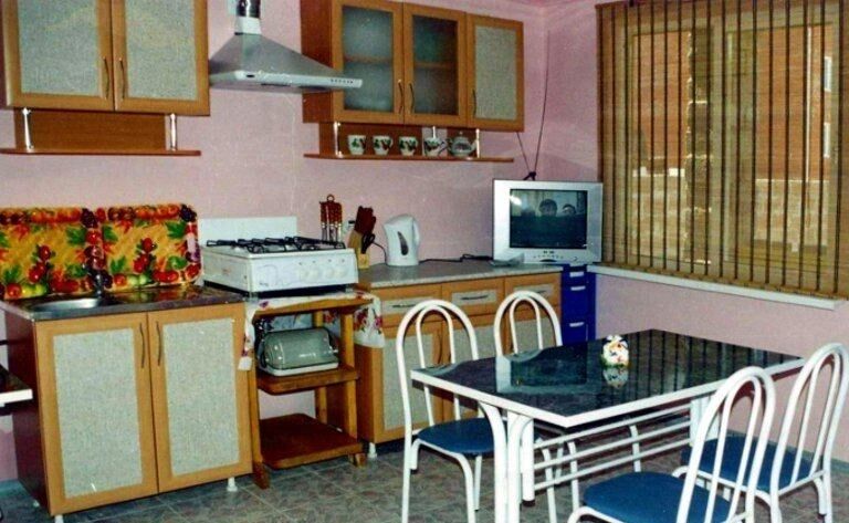 Порадует гостевой дом и родителей. В первую очередь, своими удобными номерами со всеми удобствами внутри. Любая хозяйка останется довольна кухней, на которой есть все необходимое для приготовления пищи. Для тех, кто не любит готовить в отпуске, есть возможность заказать двухразовое питание. На территории для гостей оборудована зона отдыха с мангалом, рядом с которой и находится детская площадка. Благодаря удобному размещению вы сможете и отдыхать сами, и присматривать за детьми. Вечера можно проводить в небольшом кинотеатре за просмотром интересного фильма.