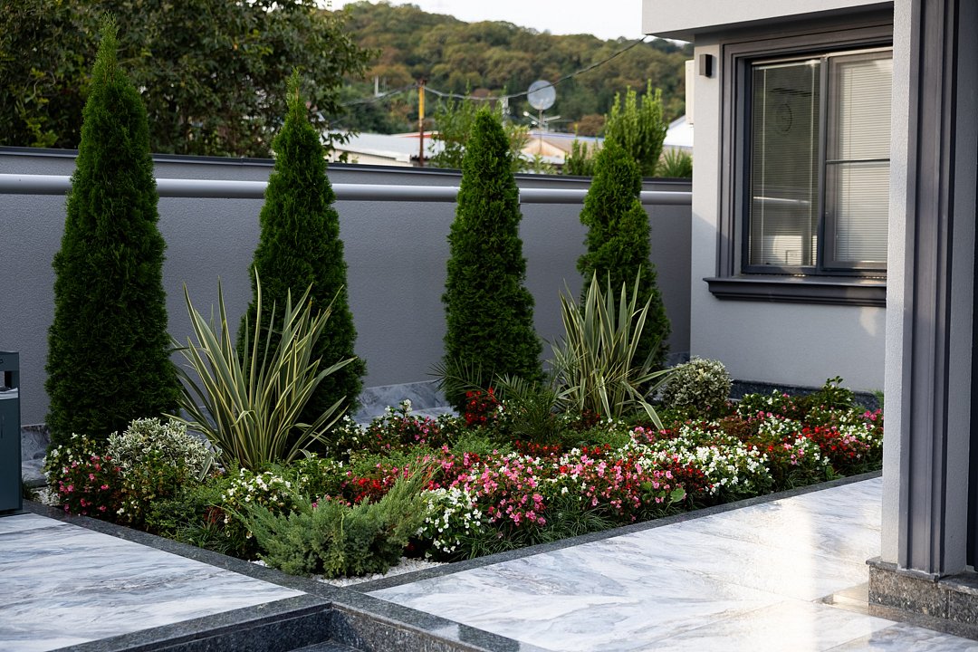 На территории есть собственная прачечная, две зоны отдыха (включая зону барбекю), парковка и мини-сад из плодовых и вечнозелёных деревьев и кустарников. Имеется своя котельная, позволяющая работать системе тепловодоснабжения бесперебойно и в автономном режиме.