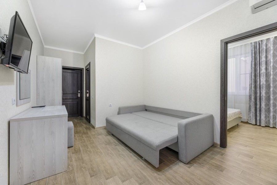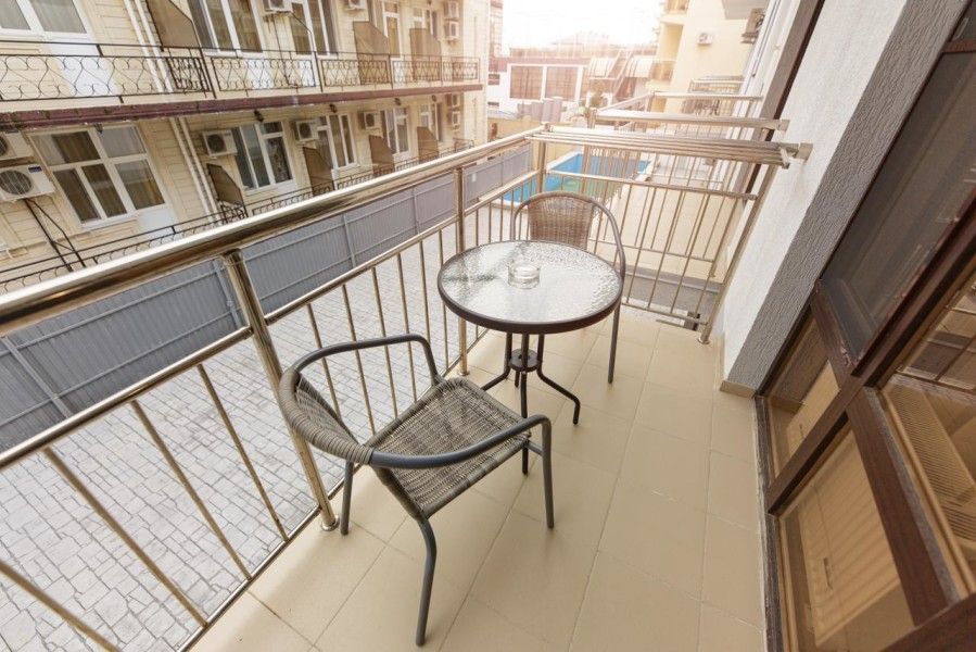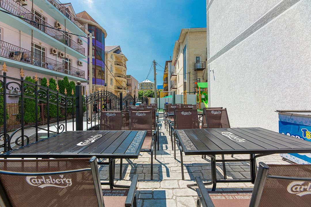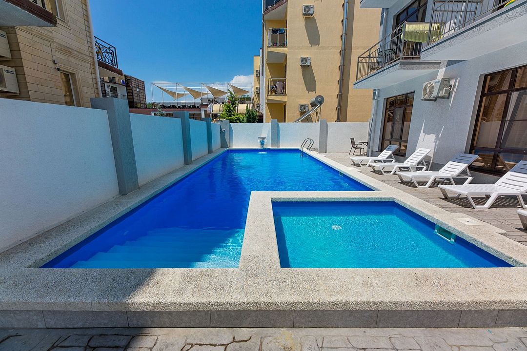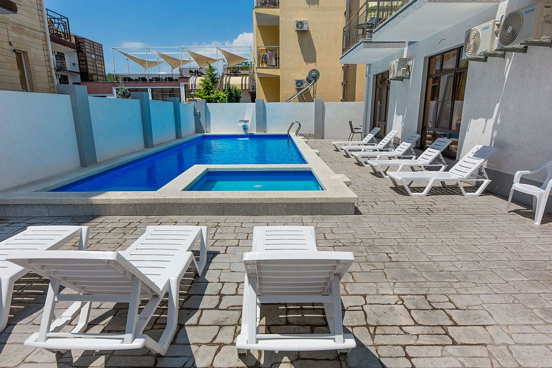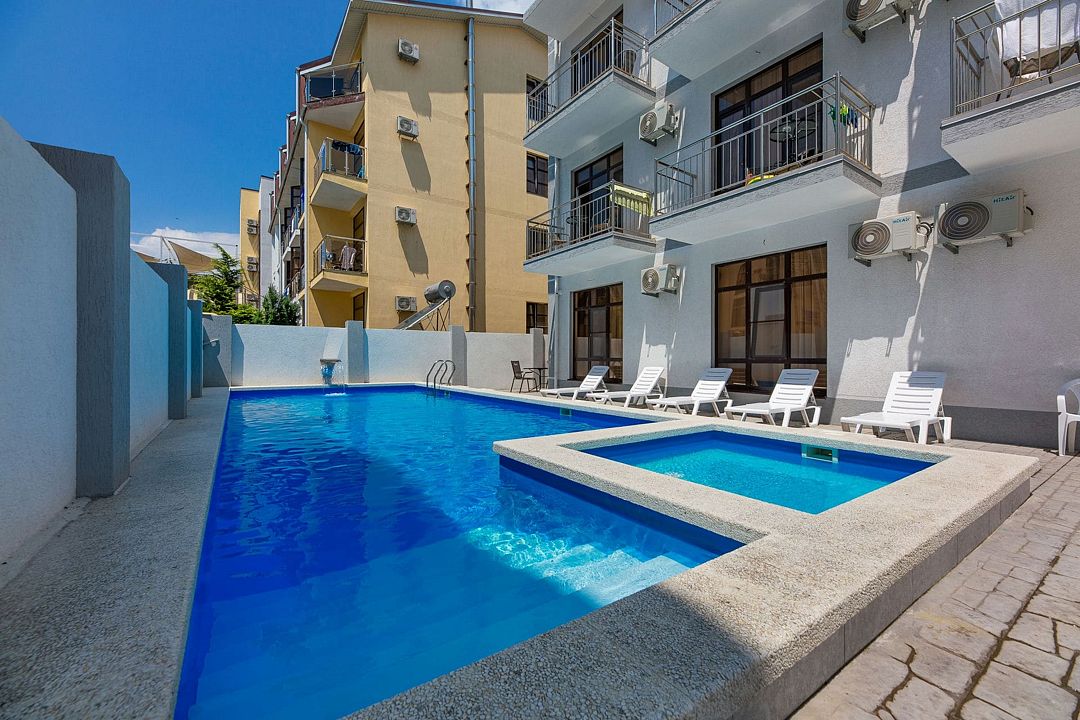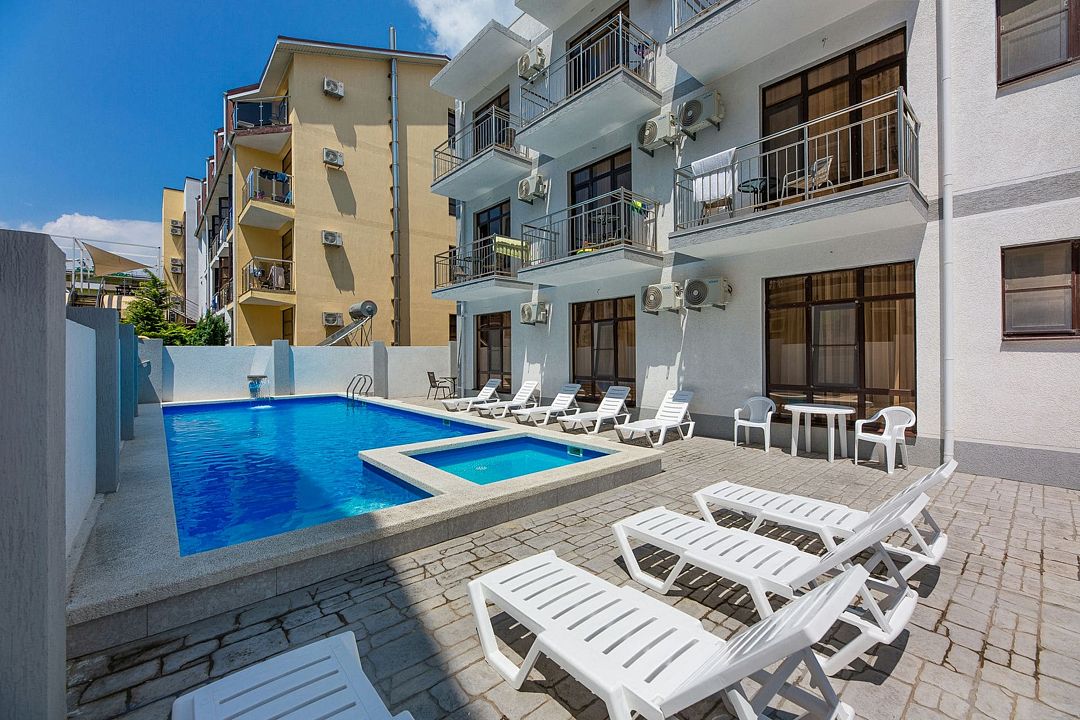 Путешествие с семьейОбязательно вернемся именно в этот отель!Отель очень понравился. Есть все необходимое. Хорошая звукоизоляция, за закрытыми окнами не слышно совсем шума с улицы, да и соседей не слышали. В меру удален от шумной Паралии и недалеко от моря, минут 10 пешком. Каждый день производилась влажная уборка, минимум раз в два дня менялись полотенца. Территория чистая, есть бассейн, детская площадка и бар. Мангальной зоны нет и это онромный плюс! Шашлыки в Витязеве жарят на каждом шагу и через пару дней ты уже не можешь выносить этот дым и запах.
